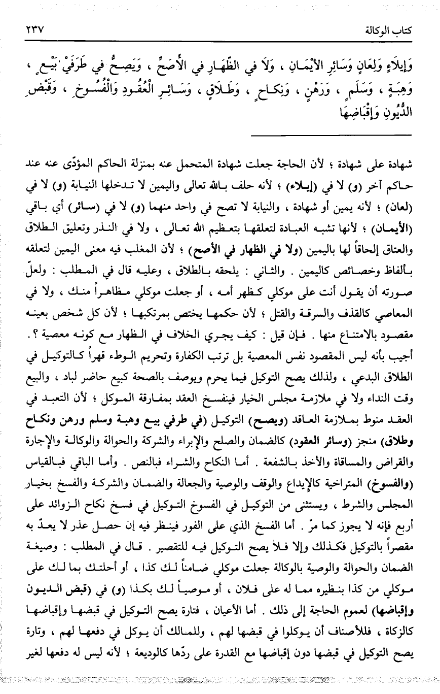 (وَيَصِحُّ) التَّوْكِيلُ (فِي طَرَفَيْ بَيْعٍ وَهِبَةٍ وَسَلَمٍ وَرَهْنٍ وَنِكَاحٍ وَطَلَاقٍ) مُنْجَزٍ (وَسَائِرُ الْعُقُودِ) كَالضَّمَانِ وَالصُّلْحِ وَالْإِبْرَاءِ وَالشَّرِكَةِ وَالْحَوَالَةِ وَالْوَكَالَةِ وَالْإِجَارَةِ وَالْقِرَاضِ وَالْمُسَاقَاةِ وَالْأَخْذِ بِالشُّفْعَةِ. أَمَّا النِّكَاحُ وَالشِّرَاءُ فَبِالنَّصِّ. وَأَمَّا الْبَاقِي فَبِالْقِيَاسِ (وَالْفُسُوخِ) الْمُتَرَاخِيَةِ كَالْإِيدَاعِ وَالْوَقْفِ وَالْوَصِيَّةِ وَالْجَعَالَةِ وَالضَّمَانِ وَالشَّرِكَةِ وَالْفَسْخِ بِخِيَارِ الْمَجْلِسِ وَالشَّرْطِ، وَيُسْتَثْنَى مِنْ التَّوْكِيلِ فِي الْفُسُوخِ التَّوْكِيلُ فِي فَسْخِ نِكَاحِ الزَّوَائِدِ عَلَى أَرْبَعٍ فَإِنَّهُ لَا يَجُوزُ كَمَا مَرَّ. أَمَّا الْفَسْخُ الَّذِي عَلَى الْفَوْرِ فَيُنْظَرُ فِيهِ إنْ حَصَلَ عُذْرٌ لَا يُعَدُّ بِهِ مُقَصِّرًا بِالتَّوْكِيلِ فَكَذَلِكَ وَإِلَّا فَلَا يَصِحُّ التَّوْكِيلُ فِيهِ لِلتَّقْصِيرِ.