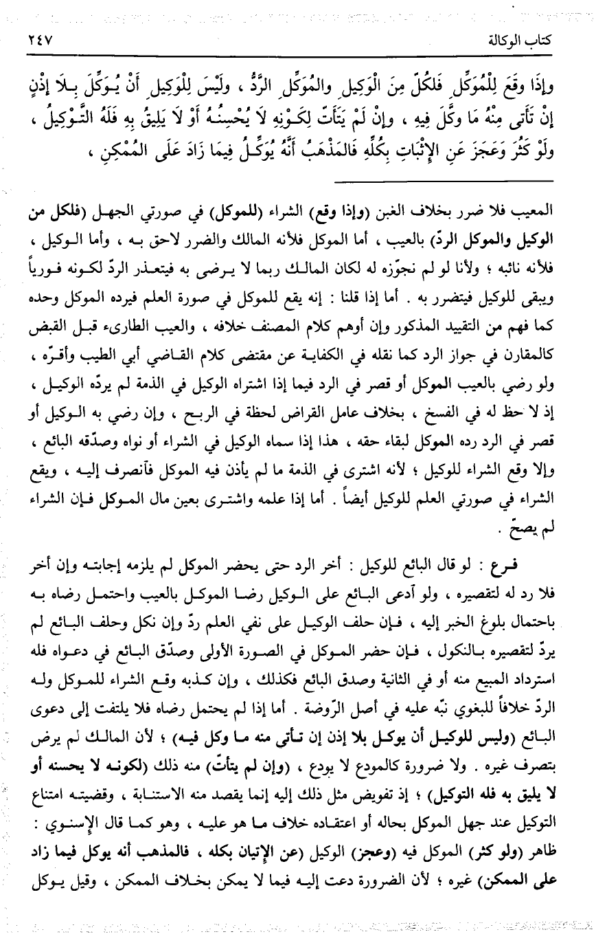 وَإِذَا وَقَعَ لِلْمُوَكِّلِ فَلِكُلٍّ مِنْ الْوَكِيلِ وَالْمُوَكِّلِ الرَّدُّ.