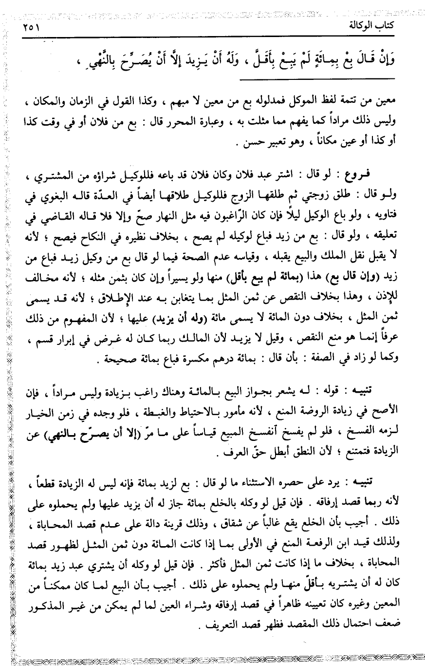 ـــــــــــــــــــــــــــــQمُعَيَّنٍ مِنْ تَتِمَّةِ لَفْظِ الْمُوَكِّلِ فَمَدْلُولُهُ بِعْ مِنْ مُعَيَّنٍ لَا مُبْهَمٍ، وَكَذَا الْقَوْلُ فِي الزَّمَانِ وَالْمَكَانِ، وَلَيْسَ ذَلِكَ مُرَادًا كَمَا يُفْهَمُ مِمَّا مَثَّلْتُ بِهِ، وَعِبَارَةُ الْمُحَرَّرِ قَالَ: بِعْ مِنْ فُلَانٍ أَوْ فِي وَقْتِ كَذَا أَوْ كَذَا أَوْ عَيَّنَ مَكَانًا، وَهُوَ تَعْبِيرٌ حَسَنٌ.