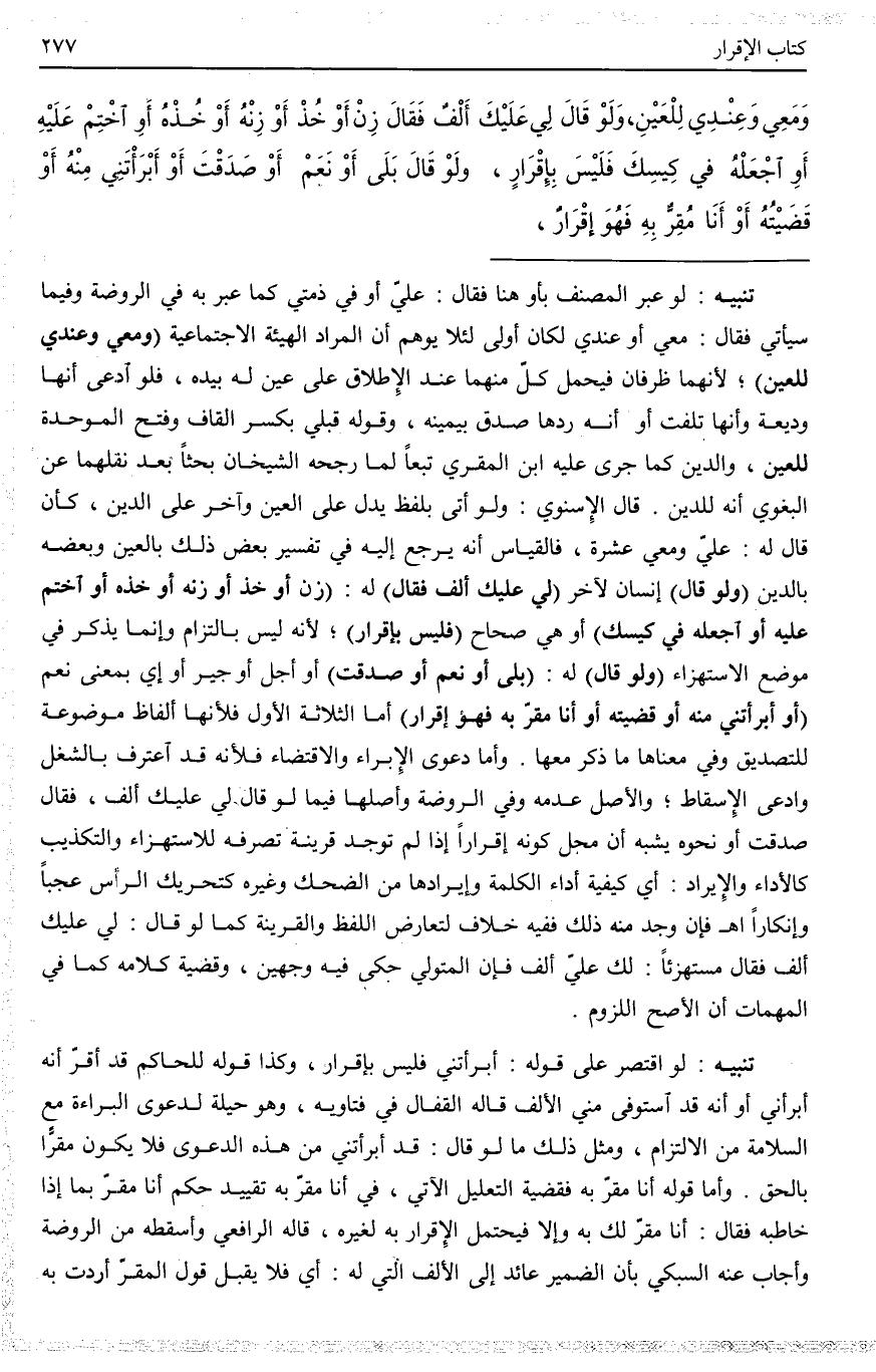 تَنْبِيهٌ لَوْ اقْتَصَرَ عَلَى قَوْلِهِ: أَبْرَأْتنِي فَلَيْسَ بِإِقْرَارٍ، وَكَذَا قَوْلُهُ: لِلْحَاكِمِ قَدْ أَقَرَّ أَنَّهُ أَبْرَأَنِي أَوْ أَنَّهُ قَدْ اسْتَوْفَى مِنِّي الْأَلْفَ قَالَهُ الْقَفَّالُ فِي فَتَاوِيهِ، وَهُوَ حِيلَةٌ لِدَعْوَى الْبَرَاءَةِ مَعَ السَّلَامَةِ مِنْ الِالْتِزَامِ، وَمِثْلُ ذَلِكَ مَا لَوْ قَالَ: قَدْ أَبْرَأْتنِي مِنْ هَذِهِ الدَّعْوَى فَلَا يَكُونُ مُقِرًّا بِالْحَقِّ. وَأَمَّا قَوْلُهُ: أَنَا مُقِرٌّ بِهِ، فَقَضِيَّةُ التَّعْلِيلِ الْآتِي، فِي أَنَا مُقِرٌّ بِهِ تَقْيِيدُ حُكْمِ أَنَا مُقِرٌّ بِمَا إذَا خَاطَبَهُ فَقَالَ: أَنَا مُقِرٌّ لَكَ بِهِ، وَإِلَّا فَيُحْتَمَلُ الْإِقْرَارُ بِهِ لِغَيْرِهِ، قَالَهُ الرَّافِعِيُّ وَأَسْقَطَهُ مِنْ الرَّوْضَةِ.