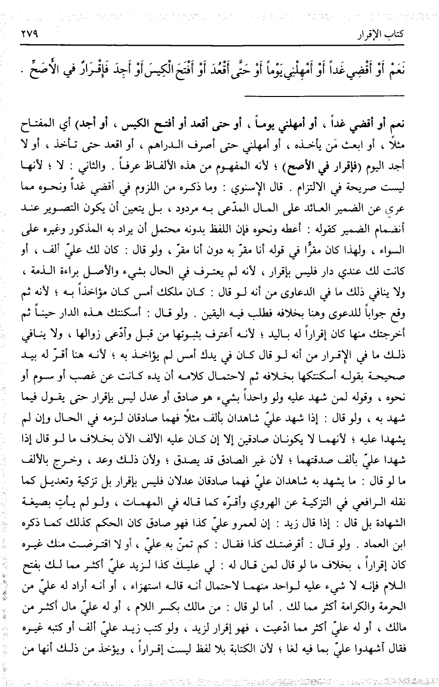 ـــــــــــــــــــــــــــــQنَعَمْ أَوْ أَقْضِي غَدًا، أَوْ أَمْهِلْنِي يَوْمًا أَوْ حَتَّى أَقْعُدَ أَوْ أَفْتَحَ الْكِيسَ، أَوْ أَجِدَ) أَيْ: الْمِفْتَاحَ مَثَلًا، أَوْ ابْعَثْ مَنْ يَأْخُذُهُ، أَوْ أَمْهِلْنِي حَتَّى أَصْرِفَ الدَّرَاهِمَ، أَوْ اُقْعُدْ حَتَّى تَأْخُذَ، أَوْ لَا أَجِدُ الْيَوْمَ (فَإِقْرَارٌ فِي الْأَصَحِّ) ؛ لِأَنَّهُ الْمَفْهُومُ مِنْ هَذِهِ الْأَلْفَاظِ عُرْفًا. وَالثَّانِي: لَا؛ لِأَنَّهَا لَيْسَتْ صَرِيحَةً فِي الِالْتِزَامِ. قَالَ الْإِسْنَوِيُّ: وَمَا ذَكَرَهُ مِنْ اللُّزُومِ فِي أَقْضِي غَدًا وَنَحْوِهِ مِمَّا عُرِّيَ عَنْ الضَّمِيرِ الْعَائِدِ عَلَى الْمَالِ الْمُدَّعَى بِهِ مَرْدُودٌ، بَلْ يَتَعَيَّنُ أَنْ يَكُونَ التَّصْوِيرُ عِنْدَ انْضِمَامِ الضَّمِيرِ كَقَوْلِهِ: أَعْطِهِ وَنَحْوِهِ فَإِنَّ اللَّفْظَ بِدُونِهِ مُحْتَمِلٌ أَنْ يُرَادَ بِهِ الْمَذْكُورُ وَغَيْرُهُ عَلَى السَّوَاءِ، وَلِهَذَا كَانَ مُقِرًّا فِي قَوْلِهِ: أَنَا مُقِرٌّ بِهِ دُونَ أَنَا مُقِرٌّ، وَلَوْ قَالَ: كَانَ لَك عَلَيَّ أَلْفٌ أَوْ كَانَتْ لَك عِنْدِي دَارٌ فَلَيْسَ بِإِقْرَارٍ؛ لِأَنَّهُ لَمْ يَعْتَرِفْ فِي الْحَالِ بِشَيْءٍ وَالْأَصْلُ بَرَاءَةُ الذِّمَّةِ، وَلَا يُنَافِي ذَلِكَ مَا فِي الدَّعَاوَى مِنْ أَنَّهُ لَوْ قَالَ: كَانَ مِلْكَك أَمْسِ كَانَ مُؤَاخَذًا بِهِ؛ لِأَنَّهُ ثَمَّ وَقَعَ جَوَابًا لِلدَّعْوَى وَهُنَا بِخِلَافِهِ فَطُلِبَ فِيهِ الْيَقِينُ.