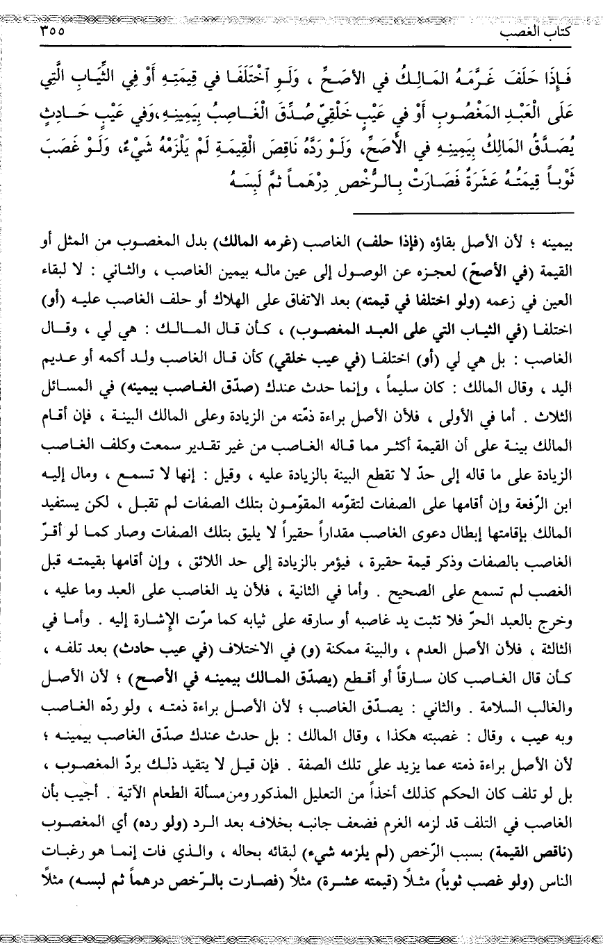 ـــــــــــــــــــــــــــــQبِيَمِينِهِ؛ لِأَنَّ الْأَصْلَ بَقَاؤُهُ (فَإِذَا حَلَفَ) الْغَاصِبُ (غَرَّمَهُ الْمَالِكُ) بَدَلَ الْمَغْصُوبِ مِنْ الْمِثْلِ أَوْ الْقِيمَةَ (فِي الْأَصَحِّ) لِعَجْزِهِ عَنْ الْوُصُولِ إلَى عَيْنِ مَالِهِ بِيَمِينِ الْغَاصِبِ، وَالثَّانِي: لَا لِبَقَاءِ الْعَيْنِ فِي زَعْمِهِ (وَلَوْ اخْتَلَفَا فِي قِيمَتِهِ) بَعْدَ الِاتِّفَاقِ عَلَى الْهَلَاكِ أَوْ حَلَفَ الْغَاصِبُ عَلَيْهِ (أَوْ) اخْتَلَفَا (فِي الثِّيَابِ الَّتِي عَلَى الْعَبْدِ الْمَغْصُوبِ) ، كَأَنْ قَالَ الْمَالِكُ: هِيَ لِي، وَقَالَ الْغَاصِبُ: بَلْ هِيَ لِي (أَوْ) اخْتَلَفَا (فِي عَيْبٍ خِلْقِيٍّ) كَأَنْ قَالَ الْغَاصِبُ وُلِدَ أَكْمَهَ أَوْ عَدِيمَ الْيَدِ، وَقَالَ الْمَالِكُ: كَانَ سَلِيمًا، وَإِنَّمَا حَدَثَ عِنْدَك (صُدِّقَ الْغَاصِبُ بِيَمِينِهِ) فِي الْمَسَائِلِ الثَّلَاثِ. أَمَّا فِي الْأُولَى، فَلِأَنَّ الْأَصْلَ بَرَاءَةُ ذِمَّتِهِ مِنْ الزِّيَادَةِ وَعَلَى الْمَالِكِ الْبَيِّنَةُ، فَإِنْ أَقَامَ الْمَالِكُ بَيِّنَةً عَلَى أَنَّ الْقِيمَةَ أَكْثَرُ مِمَّا قَالَهُ الْغَاصِبُ مِنْ غَيْرِ تَقْدِيرٍ سُمِعَتْ وَكُلِّفَ الْغَاصِبُ الزِّيَادَةَ عَلَى مَا قَالَهُ إلَى حَدٍّ لَا تَقْطَعُ الْبَيِّنَةُ بِالزِّيَادَةِ عَلَيْهِ، وَقِيلَ: إنَّهَا لَا تُسْمَعُ، وَمَالَ إلَيْهِ ابْنُ الرِّفْعَةِ وَإِنْ أَقَامَهَا عَلَى الصِّفَاتِ لِتُقَوِّمَهُ الْمُقَوِّمُونَ بِتِلْكَ الصِّفَاتِ لَمْ تُقْبَلْ، لَكِنْ يَسْتَفِيدُ الْمَالِكُ بِإِقَامَتِهَا إبْطَالَ دَعْوَى الْغَاصِبِ مِقْدَارًا حَقِيرًا لَا يَلِيقُ بِتِلْكَ الصِّفَاتِ وَصَارَ كَمَا لَوْ أَقَرَّ الْغَاصِبُ بِالصِّفَاتِ وَذَكَرَ قِيمَةً حَقِيرَةً، فَيُؤْمَرُ بِالزِّيَادَةِ إلَى حَدِّ اللَّائِقِ، وَإِنْ أَقَامَهَا بِقِيمَتِهِ قَبْلَ الْغَصْبِ لَمْ تُسْمَعْ عَلَى الصَّحِيحِ. وَأَمَّا فِي الثَّانِيَةِ، فَلِأَنَّ يَدَ الْغَاصِبِ عَلَى الْعَبْدِ وَمَا عَلَيْهِ، وَخَرَجَ بِالْعَبْدِ الْحُرُّ فَلَا تَثْبُتُ يَدُ غَاصِبِهِ أَوْ سَارِقِهِ عَلَى ثِيَابِهِ كَمَا مَرَّتْ الْإِشَارَةُ إلَيْهِ.
