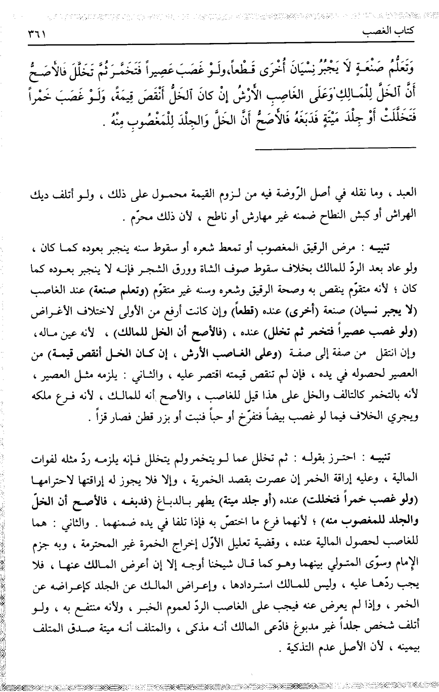 تَنْبِيهٌ احْتَرَزَ بِقَوْلِهِ: ثُمَّ تَخَلَّلَ عَمَّا لَوْ يَتَخَمَّرُ وَلَمْ يَتَخَلَّلْ فَإِنَّهُ يَلْزَمُهُ رَدُّ مِثْلِهِ لِفَوَاتِ الْمَالِيَّةِ، وَعَلَيْهِ إرَاقَةُ الْخَمْرِ إنْ عُصِرَتْ بِقَصْدِ الْخَمْرِيَّةِ، وَإِلَّا فَلَا يَجُوزُ لَهُ إرَاقَتُهَا لِاحْتِرَامِهَا.