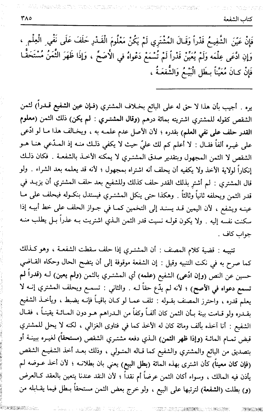 (فَإِنْ عَيَّنَ الشَّفِيعُ قَدْرًا) لِثَمَنِ الشِّقْصِ كَقَوْلِهِ لِلْمُشْتَرِي اشْتَرَيْته بِمِائَةِ دِرْهَمٍ (وَقَالَ الْمُشْتَرِي: لَمْ يَكُنْ) ذَلِكَ الثَّمَنُ (مَعْلُومَ الْقَدْرِ حَلَفَ عَلَى نَفْيِ الْعِلْمِ) بِقَدْرِهِ؛ لِأَنَّ الْأَصْلَ عَدَمُ عِلْمِهِ بِهِ، وَيُخَالِفُ هَذَا مَا لَوْ ادَّعَى عَلَى غَيْرِهِ أَلْفًا فَقَالَ: لَا أَعْلَمُ كَمْ لَكَ عَلَيَّ حَيْثُ لَا يَكْفِي ذَلِكَ مِنْهُ إذْ الْمُدَّعَى هُنَا هُوَ الشِّقْصُ لَا الثَّمَنُ الْمَجْهُولُ وَبِتَقْدِيرِ صِدْقِ الْمُشْتَرِي لَا يُمْكِنُهُ الْأَخْذُ بِالشُّفْعَةِ. فَكَانَ ذَلِكَ إنْكَارًا لِوِلَايَةِ الْأَخْذِ وَلَا يَكْفِيهِ أَنْ يَحْلِفَ أَنَّهُ اشْتَرَاهُ بِمَجْهُولٍ؛ لِأَنَّهُ قَدْ يَعْلَمُهُ بَعْدَ الشِّرَاءِ. وَلَوْ قَالَ الْمُشْتَرِي: لَمْ أَشْتَرِ بِذَلِكَ الْقَدْرِ حَلَفَ كَذَلِكَ وَلِلشَّفِيعِ بَعْدَ حَلِفِ الْمُشْتَرِي أَنْ يَزِيدَ فِي قَدْرِ الثَّمَنِ وَيُحَلِّفَهُ ثَانِيًا وَثَالِثًا. وَهَكَذَا حَتَّى يَنْكُلَ الْمُشْتَرِي فَيُسْتَدَلَّ بِنُكُولِهِ فَيَحْلِفَ عَلَى مَا عَيَّنَهُ وَيُشَفَّعَ؛ لِأَنَّ الْيَمِينَ قَدْ يُسْنَدُ إلَى التَّخْمِينِ كَمَا فِي جَوَازِ الْحَلِفِ عَلَى خَطِّ أَبِيهِ إذَا سَكَنَتْ نَفْسُهُ إلَيْهِ. وَلَا يَكُونُ قَوْلُهُ نَسِيت قَدْرَ الثَّمَنِ الَّذِي اشْتَرَيْت بِهِ عُذْرًا بَلْ يُطْلَبُ مِنْهُ جَوَابٌ كَافٍ