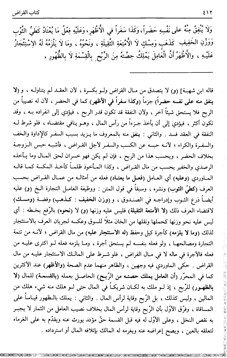 (وَ) عَلَيْهِ أَيْضًا ذَرْعُ الثَّوْبِ وَإِدْرَاجُهُ فِي الصُّنْدُوقِ، وَ (وَزْنُ الْخَفِيفِ: كَذَهَبٍ) وَفِضَّةٍ (وَمِسْكٍ) لِاقْتِضَاءِ الْعُرْفِ ذَلِكَ، (لَا الْأَمْتِعَةِ الثَّقِيلَةِ) فَلَيْسَ عَلَيْهِ وَزْنُهَا، (وَ) لَا (نَحْوُهُ) - بِالرَّفْعِ بِخَطِّهِ -: أَيْ لَيْسَ عَلَيْهِ نَحْوُ وَزْنِهَا كَحَمْلِهَا وَنَقْلِهَا مِنْ الْخَانِ مَثَلًا لِلسُّوقِ وَعَكْسِهِ لِجَرَيَانِ الْعُرْفِ بِالِاسْتِئْجَارِ لِذَلِكَ، (وَمَا لَا يَلْزَمُهُ) كَأُجْرَةِ كَيْلٍ وَحِفْظٍ (لَهُ الِاسْتِئْجَارُ عَلَيْهِ) مِنْ مَالِ الْقِرَاضِ؛ لِأَنَّهُ مِنْ تَتِمَّةِ التِّجَارَةِ وَمَصَالِحِهَا، وَلَوْ فَعَلَهُ بِنَفْسِهِ لَمْ يَسْتَحِقَّ أُجْرَةً، وَمَا يَلْزَمُهُ فِعْلُهُ لَوْ اكْتَرَى عَلَيْهِ مَنْ فَعَلَهُ فَالْأُجْرَةُ فِي مَالِهِ لَا فِي مَالِ الْقِرَاضِ، فَلَوْ شَرَطَ عَلَى الْمَالِكِ الِاسْتِئْجَارَ عَلَيْهِ مِنْ مَالِ الْقِرَاضِ حَكَى الْمَاوَرْدِيُّ فِيهِ وَجْهَيْنِ، وَالظَّاهِرُ مِنْهُمَا عَدَمُ الصِّحَّةِ، (وَالْأَظْهَرُ) عِنْدَ الْأَكْثَرِينَ كَمَا فِي الْمُحَرَّرِ (أَنَّ الْعَامِلَ يَمْلِكُ حِصَّتَهُ مِنْ الرِّبْحِ) الْحَاصِلِ بِعَمَلِهِ (بِالْقِسْمَةِ) لِلْمَالِ (لَا بِالظُّهُورِ) لِلرِّبْحِ، إذْ لَوْ مَلَكَ بِهِ لَكَانَ شَرِيكًا فِي الْمَالِ، حَتَّى لَوْ هَلَكَ مِنْهُ شَيْءٌ هَلَكَ مِنْ الْمَالَيْنِ، وَلَيْسَ كَذَلِكَ، بَلْ الرِّبْحُ وِقَايَةٌ لِرَأْسِ الْمَالِ.