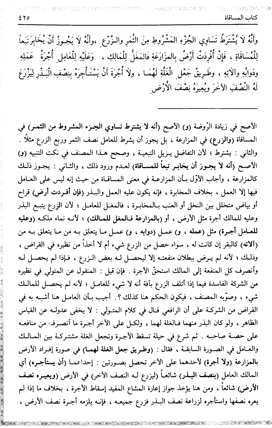 أُجِيبَ بِأَنَّ الْعَامِلَ هُنَا أَشْبَهُ بِهِ فِي الْقِرَاضِ مِنْ الشَّرِكَةِ، عَلَى أَنَّ الرَّافِعِيَّ قَالَ فِي كَلَامِ الْمُتَوَلِّي: لَا يَخْفَى عُدُولُهُ عَنْ الْقِيَاسِ الظَّاهِرِ. وَلَوْ كَانَ الْبَذْرُ مِنْهُمَا فَالْغَلَّةُ لَهُمَا، وَلِكُلٍّ عَلَى الْآخَرِ أُجْرَةُ مَا انْصَرَفَ مِنْ مَنَافِعِهِ عَلَى حِصَّةِ صَاحِبِهِ.