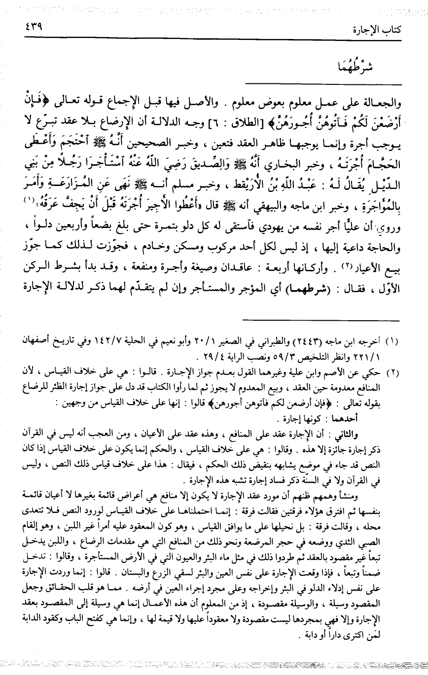 وَالْأَصْلُ فِيهَا قَبْلَ الْإِجْمَاعِ قَوْله تَعَالَى: {فَإِنْ أَرْضَعْنَ لَكُمْ فَآتُوهُنَّ أُجُورَهُنَّ} [الطلاق: 6] ، وَجْهُ الدَّلَالَةِ أَنَّ الْإِرْضَاعَ بِلَا عَقْدٍ تَبَرُّعٌ لَا يُوجِبُ أُجْرَةً، وَإِنَّمَا يُوجِبُهَا ظَاهِرُ الْعَقْدِ فَتَعَيَّنَ، وَخَبَرُ الصَّحِيحَيْنِ «أَنَّهُ - صَلَّى اللَّهُ عَلَيْهِ وَسَلَّمَ - احْتَجَمَ وَأَعْطَى الْحَجَّامَ أُجْرَتَهُ» ، وَخَبَرُ الْبُخَارِيِّ «أَنَّهُ - صَلَّى اللَّهُ عَلَيْهِ وَسَلَّمَ - وَالصِّدِّيقُ - رَضِيَ اللَّهُ عَنْهُ - اسْتَأْجَرَا رَجُلًا مِنْ بَنِي الدِّيلِ يُقَالُ لَهُ: عَبْدُ اللَّهِ بْنُ الْأُرَيْقِطِ» ، وَخَبَرُ مُسْلِمٍ «أَنَّهُ - صَلَّى اللَّهُ عَلَيْهِ وَسَلَّمَ - نَهَى عَنْ الْمُزَارَعَةِ وَأَمَرَ بِالْمُؤَاجَرَةِ» ، وَخَبَرُ ابْنِ مَاجَهْ وَالْبَيْهَقِيِّ أَنَّهُ - صَلَّى اللَّهُ عَلَيْهِ وَسَلَّمَ - قَالَ: «أَعْطُوا الْأَجِيرَ أُجْرَتَهُ قَبْلَ أَنْ يَجِفَّ عَرَقُهُ» ، وَرُوِيَ أَنَّ عَلِيًّا أَجَرَ نَفْسَهُ مِنْ يَهُودِيٍّ فَاسْتَقَى لَهُ: كُلُّ دَلْوٍ بِتَمْرَةٍ حَتَّى بَلَغَ بِضْعًا وَأَرْبَعِينَ دَلْوًا، وَالْحَاجَةُ دَاعِيَةٌ إلَيْهَا، إذْ لَيْسَ لِكُلِّ أَحَدٍ مَرْكُوبٌ وَمَسْكَنٌ وَخَادِمٌ، فَجُوِّزَتْ لِذَلِكَ كَمَا جُوِّزَ بَيْعُ الْأَعْيَارِ.