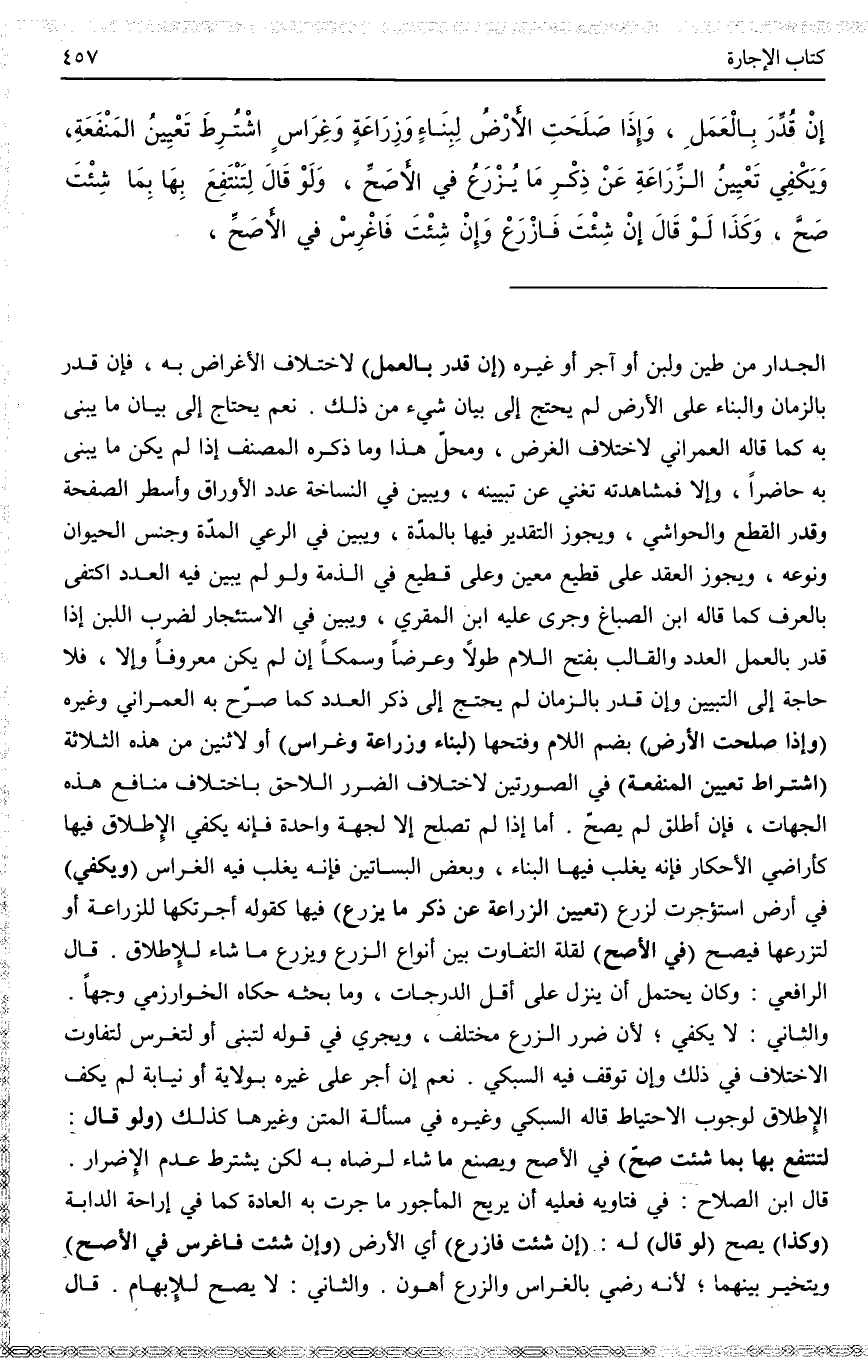 ـــــــــــــــــــــــــــــQالْجِدَارُ مِنْ طِينٍ وَلَبِنٍ أَوْ آجُرٍّ أَوْ غَيْرِهِ (إنْ قُدِّرَ بِالْعَمَلِ) لِاخْتِلَافِ الْأَغْرَاضِ بِهِ، فَإِنْ قُدِّرَ بِالزَّمَانِ وَالْبِنَاءِ عَلَى الْأَرْضِ لَمْ يَحْتَجْ إلَى بَيَانِ شَيْءٍ مِنْ ذَلِكَ. نَعَمْ يَحْتَاجُ إلَى بَيَانِ مَا يُبْنَى بِهِ كَمَا قَالَهُ الْعِمْرَانِيُّ لِاخْتِلَافِ الْغَرَضِ، وَمَحَلُّ هَذَا وَمَا ذَكَرَهُ الْمُصَنِّفُ إذَا لَمْ يَكُنْ مَا يُبْنَى بِهِ حَاضِرًا، وَإِلَّا فَمُشَاهَدَتُهُ تُغْنِي عَنْ تَبْيِينِهِ، وَيُبَيَّنُ فِي النِّسَاخَةِ عَدَدُ الْأَوْرَاقِ وَأَسْطُرُ الصَّفْحَةِ وَقَدْرُ الْقِطَعِ وَالْحَوَاشِي، وَيَجُوزُ التَّقْدِيرُ فِيهَا بِالْمُدَّةِ. وَيُبَيَّنُ فِي الرَّعْيِ الْمُدَّةُ وَجِنْسُ الْحَيَوَانِ وَنَوْعُهُ، وَيَجُوزُ الْعَقْدُ عَلَى قَطِيعٍ مُعَيَّنٍ وَعَلَى قَطِيعٍ فِي الذِّمَّةِ، وَلَوْ لَمْ يُبَيَّنْ فِيهِ الْعَدَدُ اكْتَفَى بِالْعُرْفِ كَمَا قَالَهُ ابْنُ الصَّبَّاغِ وَجَرَى عَلَيْهِ ابْنُ الْمُقْرِي. وَيُبَيَّنُ فِي الِاسْتِئْجَارِ لِضَرْبِ اللَّبِنِ إذَا قُدِّرَ بِالْعَمَلِ الْعَدَدُ وَالْقَالَبُ - بِفَتْحِ اللَّامِ - طُولًا وَعَرْضًا وَسَمْكًا إنْ لَمْ يَكُنْ مَعْرُوفًا، وَإِلَّا فَلَا حَاجَةَ إلَى التَّبْيِينِ، وَإِنْ قُدِّرَ بِالزَّمَانِ لَمْ يَحْتَجْ إلَى ذِكْرِ الْعَدَدِ كَمَا صَرَّحَ بِهِ الْعِمْرَانِيُّ وَغَيْرُهُ.