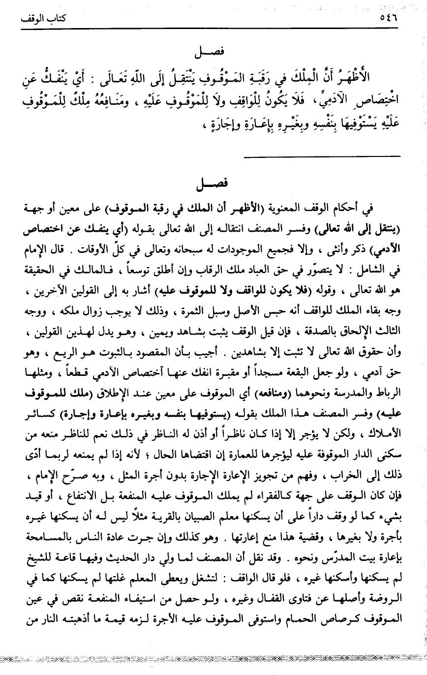 ـــــــــــــــــــــــــــــQ [فَصْلٌ فِي أَحْكَامِ الْوَقْفِ الْمَعْنَوِيَّةِ]