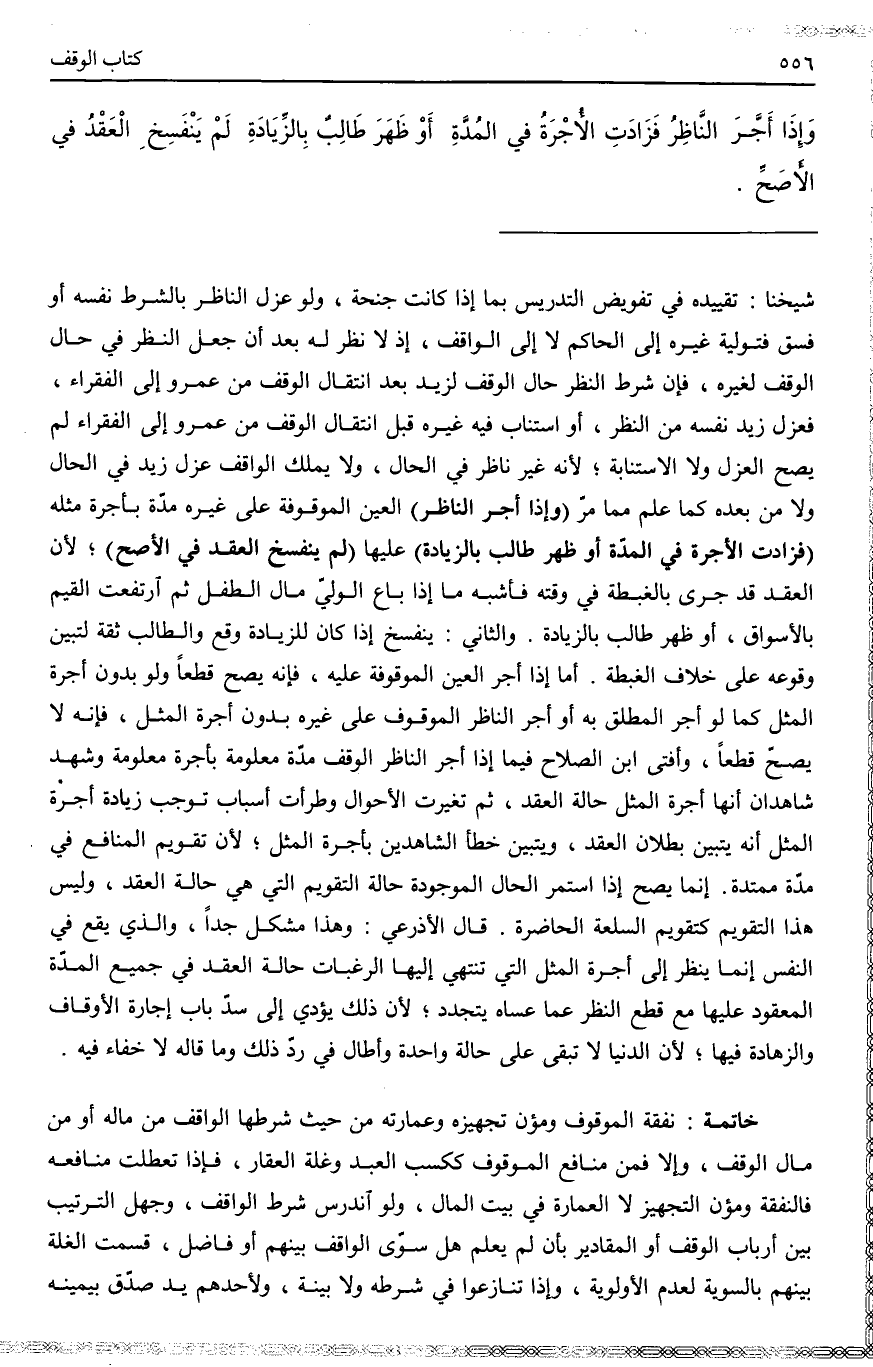 أَمَّا إذَا أَجَّرَ الْعَيْنَ الْمَوْقُوفَةَ عَلَيْهِ، فَإِنَّهُ يَصِحُّ قَطْعًا وَلَوْ بِدُونِ أُجْرَةِ الْمِثْلِ كَمَا لَوْ أَجَّرَ الْمُطْلَقُ بِهِ أَوْ أَجَّرَ النَّاظِرُ الْمَوْقُوفَ عَلَى غَيْرِهِ بِدُونِ أُجْرَةِ الْمِثْلِ، فَإِنَّهُ لَا يَصِحُّ قَطْعًا، وَأَفْتَى ابْنُ الصَّلَاحِ فِيمَا إذَا أَجَّرَ النَّاظِرُ الْوَقْفَ مُدَّةً مَعْلُومَةً بِأُجْرَةٍ مَعْلُومَةٍ وَشَهِدَ شَاهِدَانِ أَنَّهَا أُجْرَةُ الْمِثْلِ حَالَةَ الْعَقْدِ، ثُمَّ تَغَيَّرَتْ الْأَحْوَالُ وَطَرَأَتْ أَسْبَابٌ تُوجِبُ زِيَادَةَ أُجْرَةِ الْمِثْلِ أَنَّهُ يَتَبَيَّنُ بُطْلَانُ الْعَقْدِ، وَيَتَبَيَّنُ خَطَأُ الشَّاهِدَيْنِ بِأُجْرَةِ الْمِثْلِ؛ لِأَنَّ تَقْوِيمَ الْمَنَافِعِ فِي مُدَّةٍ مُمْتَدَّةٍ إنَّمَا يَصِحُّ إذَا اسْتَمَرَّ الْحَالُ الْمَوْجُودَةُ حَالَةَ التَّقْوِيمِ الَّتِي هِيَ حَالَةُ الْعَقْدِ، وَلَيْسَ هَذَا التَّقْوِيمُ كَتَقْوِيمِ السِّلْعَةِ الْحَاضِرَةِ. قَالَ الْأَذْرَعِيُّ: وَهَذَا مُشْكِلٌ جِدًّا، وَاَلَّذِي يَقَعُ فِي النَّفْسِ إنَّمَا يَنْظُرُ إلَى أُجْرَةِ الْمِثْلِ الَّتِي تَنْتَهِي إلَيْهَا الرَّغَبَاتُ حَالَةَ الْعَقْدِ فِي جَمِيعِ الْمُدَّةِ الْمَعْقُودِ عَلَيْهَا مَعَ قَطْعِ النَّظَرِ عَمَّا عَسَاهُ يَتَجَدَّدُ؛ لِأَنَّ ذَلِكَ يُؤَدِّي إلَى سَدِّ بَابِ إجَارَةِ الْأَوْقَافِ وَالزَّهَادَةِ فِيهَا؛ لِأَنَّ الدُّنْيَا لَا تَبْقَى عَلَى حَالَةٍ وَاحِدَةٍ وَأَطَالَ فِي رَدِّ ذَلِكَ وَمَا قَالَهُ لَا خَفَاءَ فِيهِ.