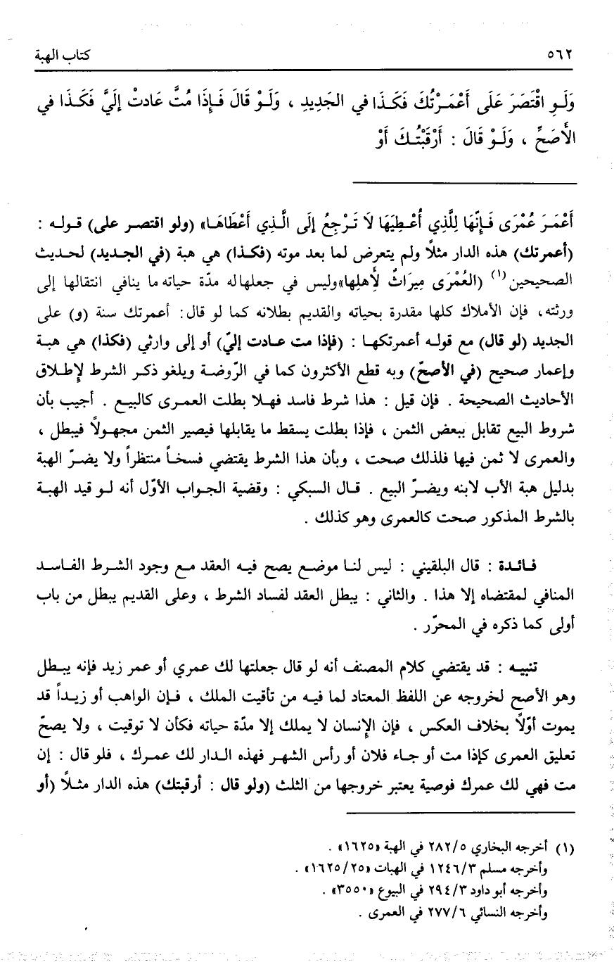 ـــــــــــــــــــــــــــــQأَعْمَرَ عُمْرَى فَإِنَّهَا لِلَّذِي أُعْطِيهَا لَا تَرْجِعُ إلَى الَّذِي أَعْطَاهَا» (وَلَوْ اقْتَصَرَ عَلَى) قَوْلِهِ: (أَعَمَرْتُك) هَذِهِ الدَّارَ مَثَلًا وَلَمْ يَتَعَرَّضْ لِمَا بَعْدَ مَوْتِهِ (فَكَذَا) هِيَ هِبَةٌ (فِي الْجَدِيدِ) لِحَدِيثِ الصَّحِيحَيْنِ «الْعُمْرَى مِيرَاثٌ لِأَهْلِهَا» وَلَيْسَ فِي جَعْلِهَا لَهُ مُدَّةَ حَيَاتِهِ مَا يُنَافِي انْتِقَالَهَا إلَى وَرَثَتِهِ، فَإِنَّ الْأَمْلَاكَ كُلَّهَا مُقَدَّرَةٌ بِحَيَاتِهِ وَالْقَدِيمُ بُطْلَانُهُ كَمَا لَوْ قَالَ: أَعَمَرْتُك سَنَةً (وَ) عَلَى الْجَدِيدِ (لَوْ قَالَ) مَعَ قَوْلِهِ أَعْمَرْتُكَهَا: (فَإِذَا مِتَّ عَادَتْ إلَيَّ) أَوْ إلَى وَارِثِيَّ (فَكَذَا) هِيَ هِبَةٌ وَإِعْمَارٌ صَحِيحٌ (فِي الْأَصَحِّ) وَبِهِ قَطَعَ الْأَكْثَرُونَ كَمَا فِي الرَّوْضَةِ وَيَلْغُو ذِكْرُ الشَّرْطِ لِإِطْلَاقِ الْأَحَادِيثِ الصَّحِيحَةِ. فَإِنْ قِيلَ: هَذَا شَرْطٌ فَاسِدٌ فَهَلَّا بَطَلَتْ الْعُمْرَى كَالْبَيْعِ.