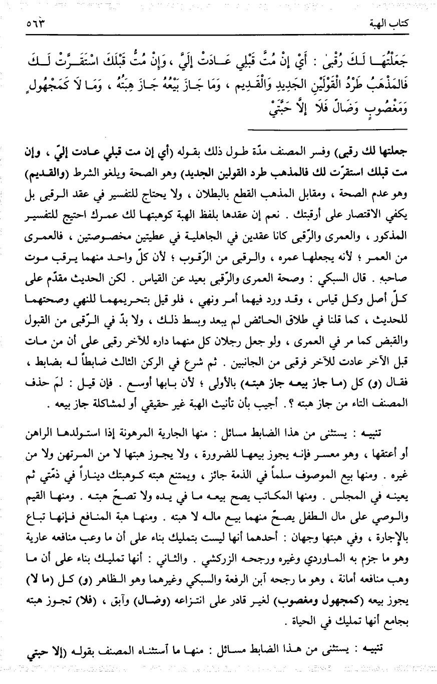 وَالْعُمْرَى وَالرُّقْبَى كَانَا عَقْدَيْنِ فِي الْجَاهِلِيَّةِ فِي عَطِيَّتَيْنِ مَخْصُوصَتَيْنِ، فَالْعُمْرَى مِنْ الْعُمْرِ؛ لِأَنَّهُ يَجْعَلُهَا عُمْرَهُ، وَالرُّقْبَى مِنْ الرُّقُوبِ؛ لِأَنَّ كُلَّ وَاحِدٍ مِنْهُمَا يَرْقُبُ مَوْتَ صَاحِبِهِ. قَالَ السُّبْكِيُّ: وَصِحَّةُ الْعُمْرَى وَالرُّقْبَى بَعِيدٌ عَنْ الْقِيَاسِ. لَكِنَّ الْحَدِيثَ مُقَدَّمٌ عَلَى كُلِّ أَصْلٍ وَكُلِّ قِيَاسٍ، وَقَدْ وَرَدَ فِيهِمَا أَمْرٌ وَنَهْيٌ، فَلَوْ قِيلَ بِتَحْرِيمِهِمَا لِلنَّهْيِ وَصِحَّتِهِمَا لِلْحَدِيثِ، كَمَا قُلْنَا فِي طَلَاقِ الْحَائِضِ لَمْ يَبْعُدْ وَبُسِطَ ذَلِكَ، وَلَا بُدَّ فِي الرُّقْبَى مِنْ الْقَبُولِ وَالْقَبْضِ كَمَا مَرَّ فِي الْعُمْرَى، وَلَوْ جَعَلَ رَجُلَانِ كُلٌّ مِنْهُمَا دَارِهِ لِلْآخَرِ رُقْبَى عَلَى أَنَّ مَنْ مَاتَ قَبْلَ الْآخَرِ عَادَتْ لِلْآخَرِ فَرُقْبَى مِنْ الْجَانِبَيْنِ.