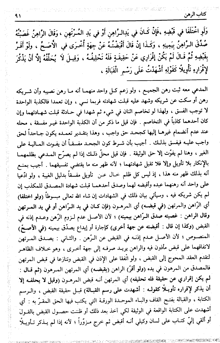 (وَلَوْ أَقَرَّ) الرَّاهِنُ (بِقَبْضِهِ) أَيْ الْمُرْتَهِنِ الْمَرْهُونَ (ثُمَّ قَالَ: لَمْ يَكُنْ إقْرَارِي عَنْ حَقِيقَةٍ فَلَهُ تَحْلِيفُهُ) أَيْ الْمُرْتَهِنِ أَنَّهُ قَبَضَ الْمَرْهُونَ (وَقِيلَ لَا يُحَلِّفُهُ إلَّا أَنْ يَذْكُرَ لِإِقْرَارِهِ تَأْوِيلًا كَقَوْلِهِ: أَشْهَدْتُ عَلَى رَسْمِ الْقَبَالَةِ) قَبْلَ حَقِيقَةِ الْقَبْضِ، وَالرَّسْمُ الْكِتَابَةُ، وَالْقَبَالَةُ بِفَتْحِ الْقَافِ وَالْبَاءِ الْمُوَحَّدَةِ الْوَرَقَةُ الَّتِي يُكْتَبُ فِيهَا الْحَقُّ الْمُقَرُّ بِهِ: أَيْ أَشْهَدْتُ عَلَى الْكِتَابَةِ الْوَاقِعَةِ فِي الْوَثِيقَةِ لِكَيْ آخُذَ بَعْدَ ذَلِكَ أَوْ ظَنَنْتُ حُصُولَ الْقَبْضِ بِالْقَوْلِ أَوْ أُلْقِيَ إلَيَّ كِتَابٌ عَلَى لِسَانِ وَكِيلِي أَنَّهُ أُقْبَضَ ثُمَّ خَرَجَ مُزَوِّرًا؛ لِأَنَّهُ إذَا لَمْ يَذْكُرْ تَأْوِيلًا