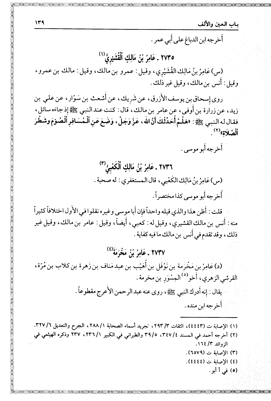 س: عامر بْن مالك القشيري، وقيل: عمرو بْن مالك، وقيل: مالك بْن عمرو، وقيل:: أنس بْن مالك، وقيل غير ذلك.