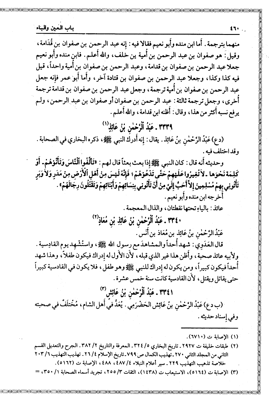 ٣٣٤٠- عبد الرحمن بن عائذ بن معاذ