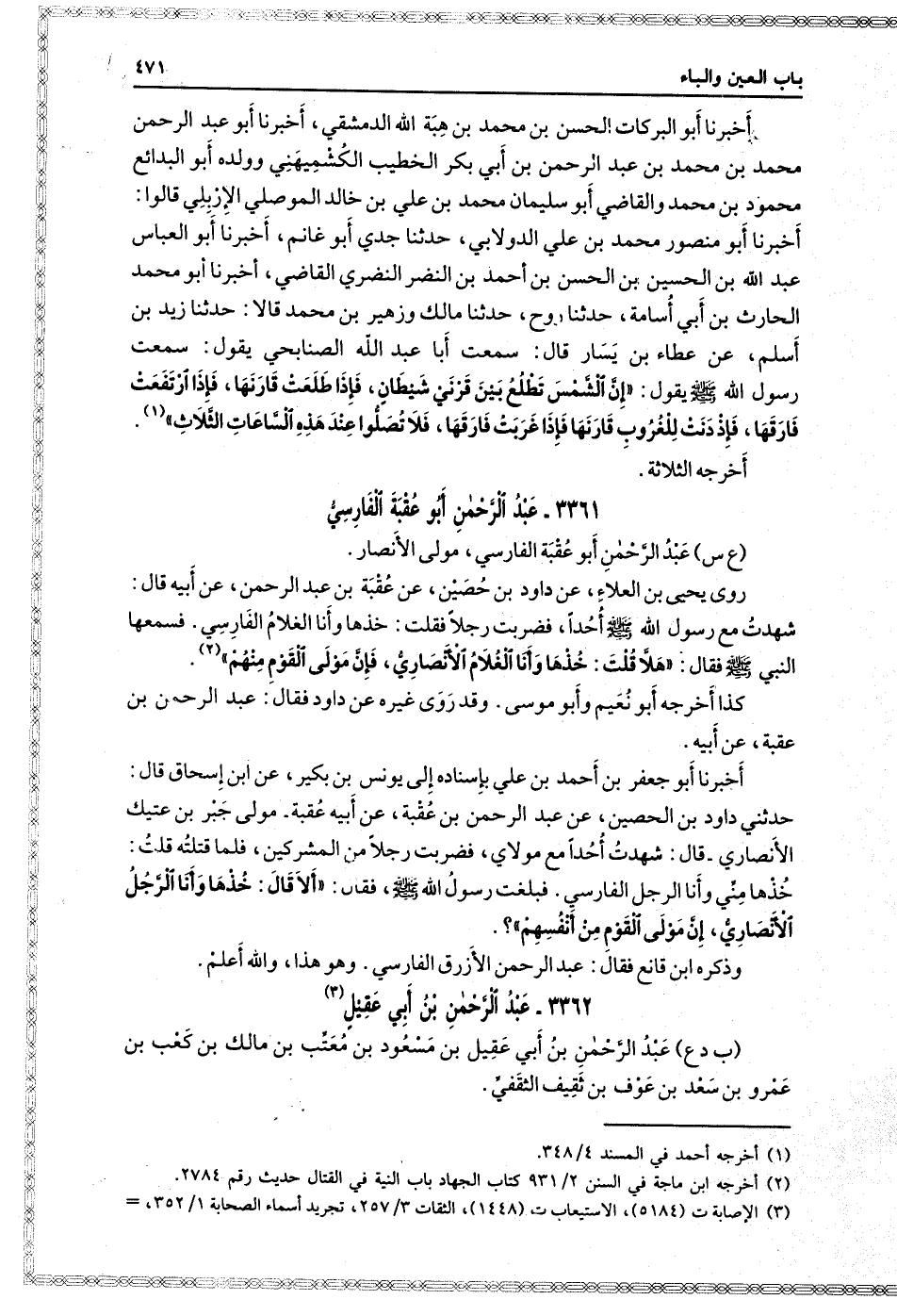 ٣٣٦١- عبد الرحمن أبو عقبة الفارسي