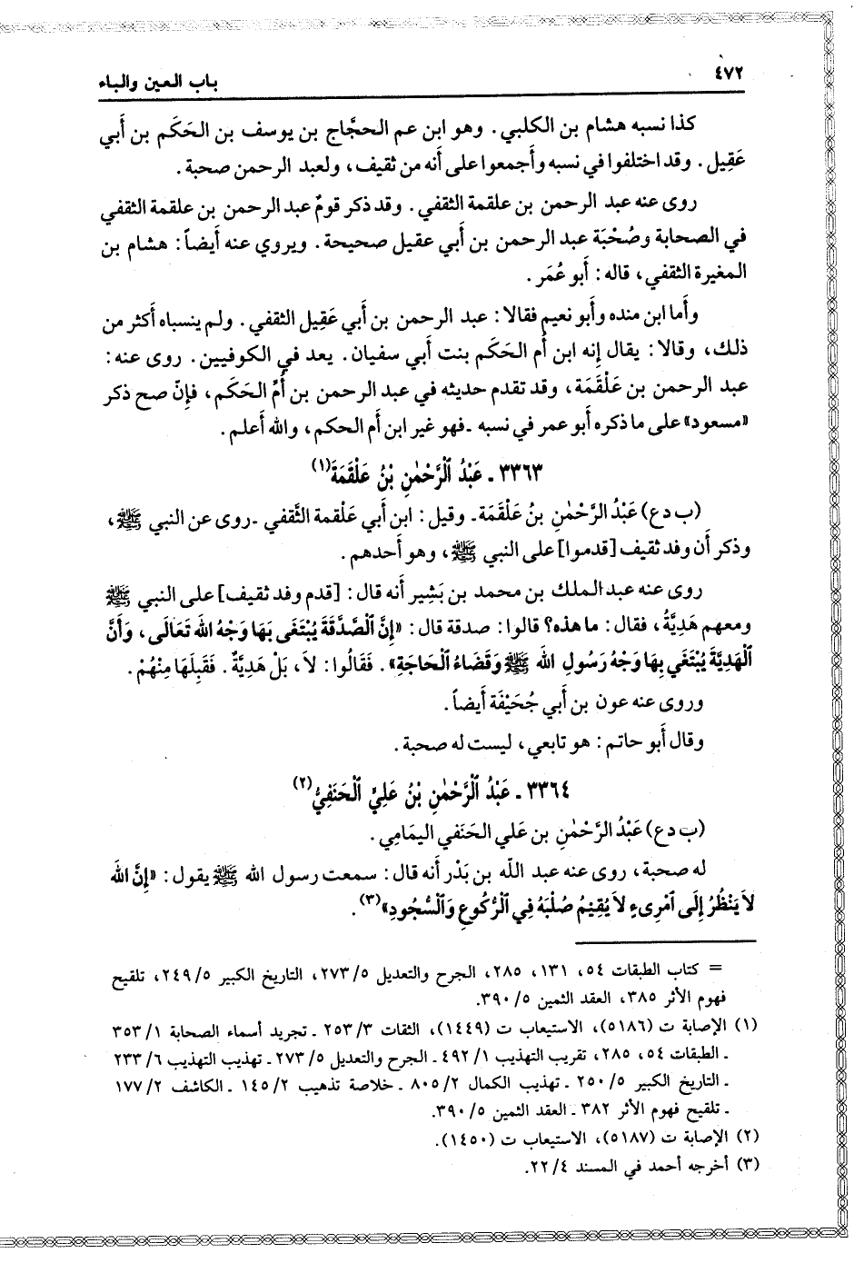 ب د ع عَبْد الرَّحْمَن بْن علقمة وقيل ابْنُ أَبِي علقمة الثقفي روى عن: النَّبِيّ صَلَّى اللَّهُ عَلَيْهِ وَسَلَّمَ وذكر أن وفد ثقيف قدموا عَلَى النَّبِيّ صَلَّى اللَّهُ عَلَيْهِ وَسَلَّمَ وهو أحدهم.
