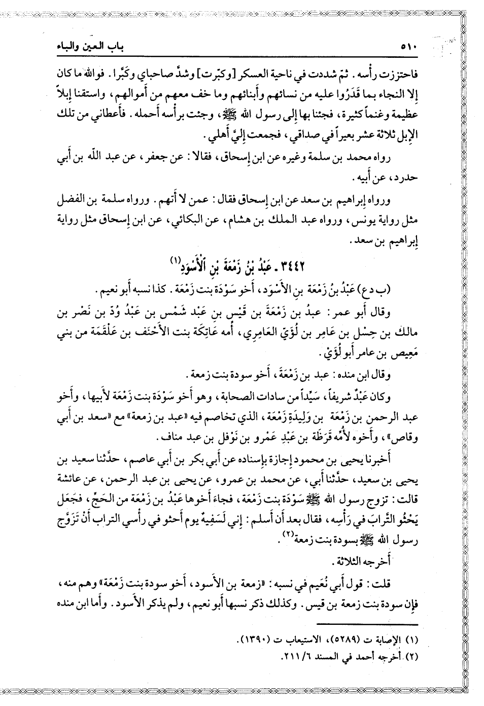 ٣٤٤٢- عبد بن زمعة بن الأسود