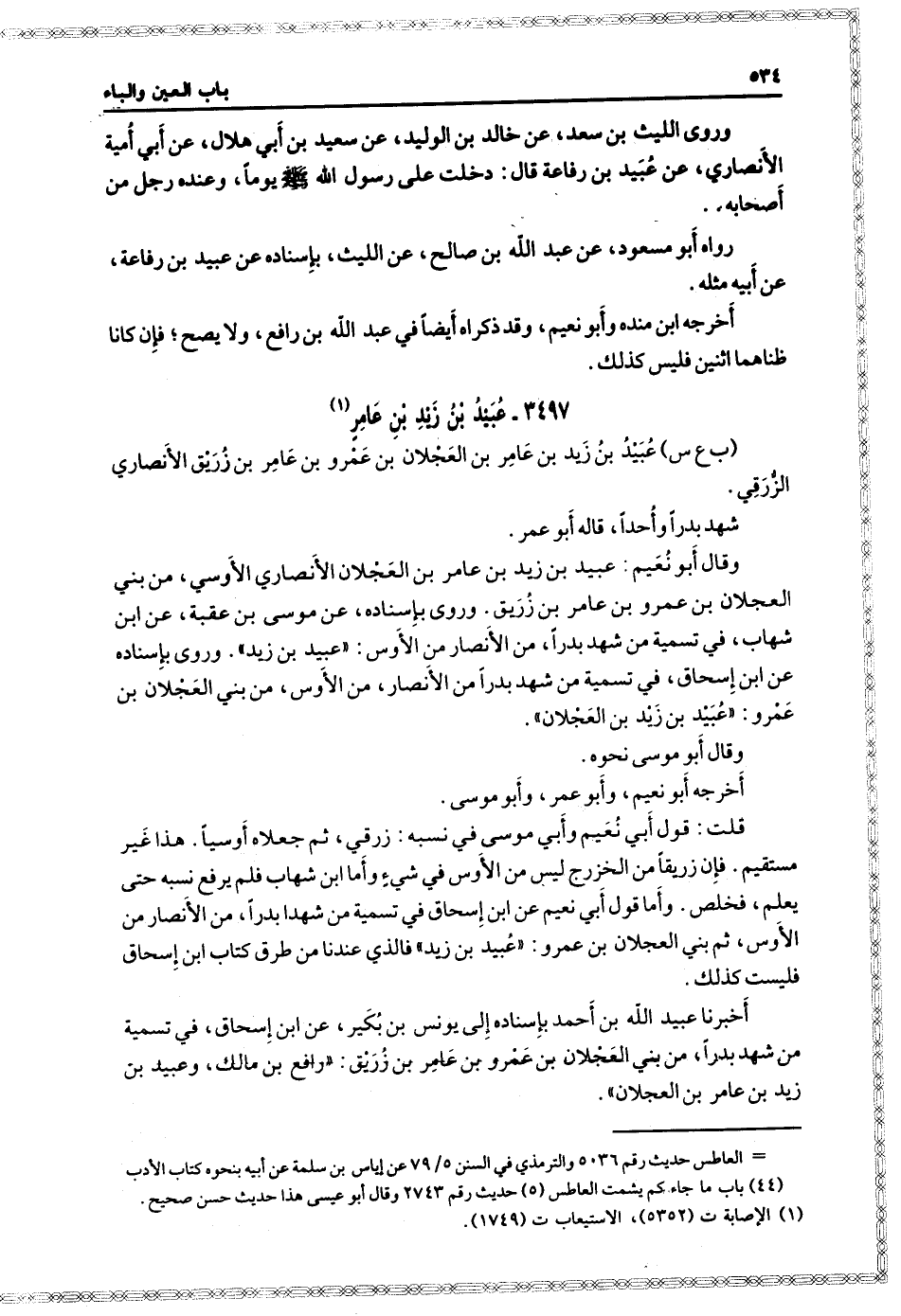 ٣٤٩٧- عبيد بن زيد بن عامر