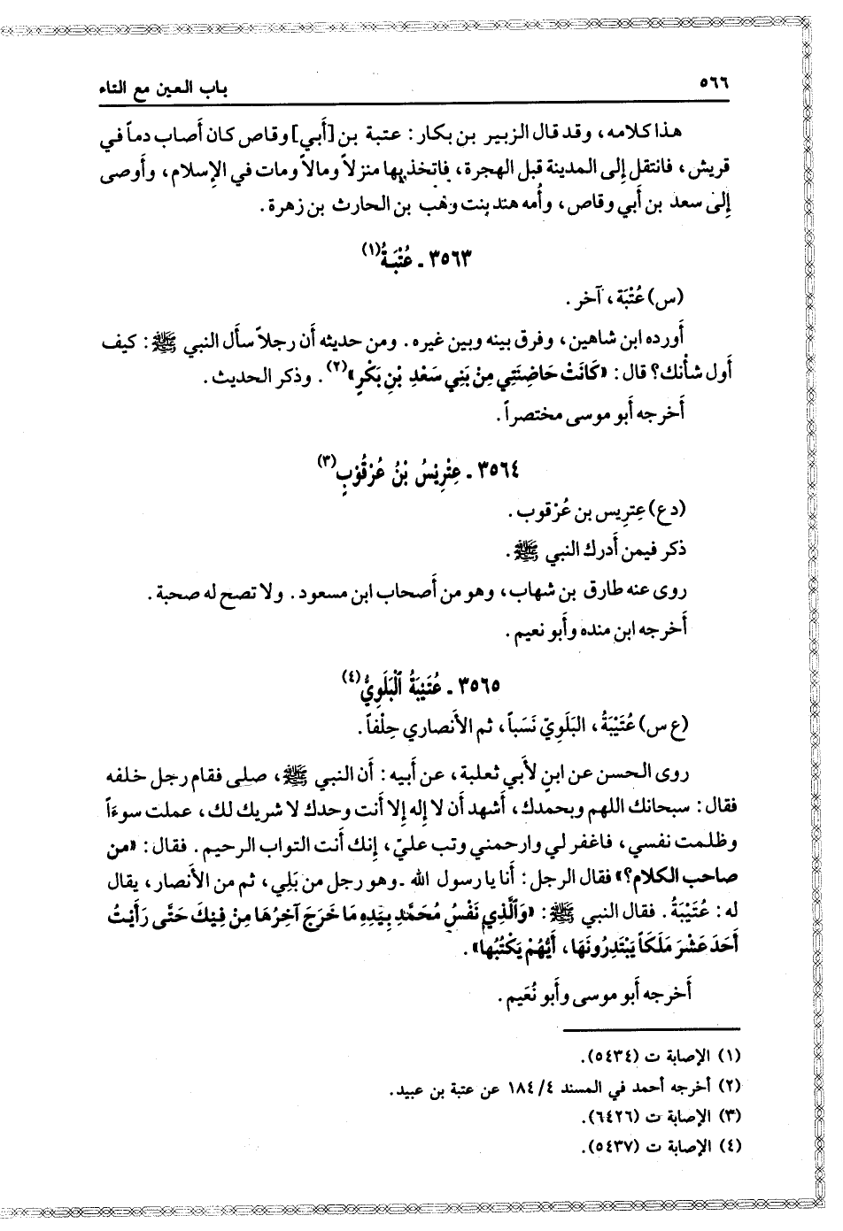 س: عتبة آخر أورده ابْنُ شاهين، وفرق بينه وبين غيره، ومن حديثه أن رجلًا سَأَلَ النَّبِيّ صَلَّى اللَّهُ عَلَيْهِ وَسَلَّمَ: كيف أول شأنك؟ قَالَ: " كانت حاضنتي من بني سعد بْن بَكْر "، وذكر الحديث.