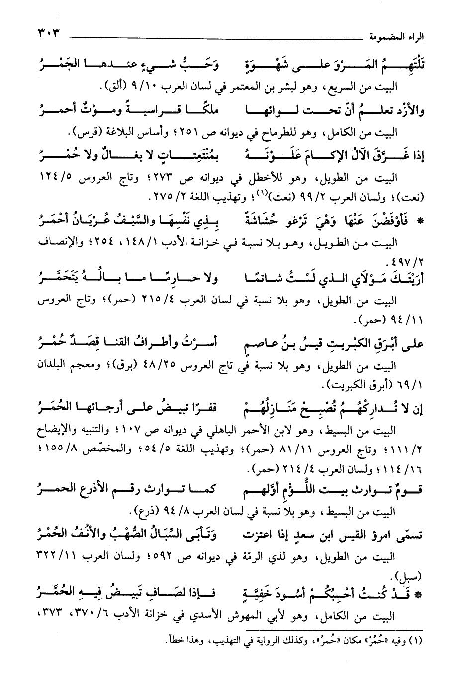 (¬1) وفيه «حُمُرْ» مكان «حُمرُ»، وكذلك الرواية في التهذيب، وهذا خطأ.
