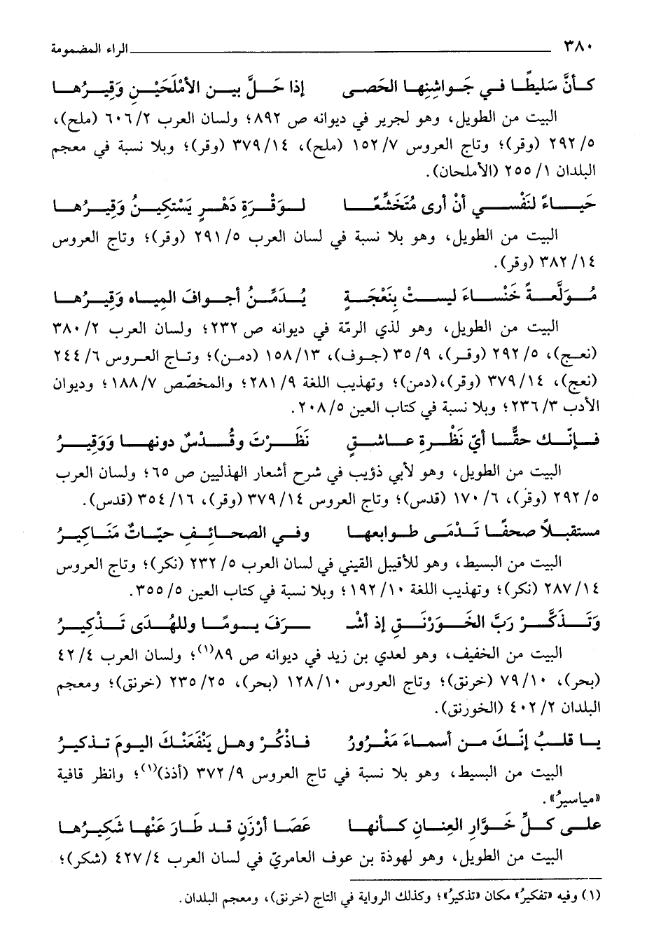 (¬1) وفيه «تفكيرُ» مكان «تذكير»؛ وكذلك الرواية في التاج (خرنق)، ومعجم البلدان.