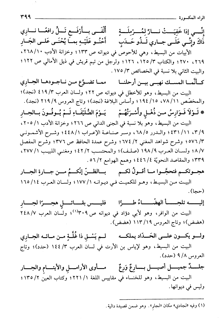 (¬1) وفيه «لجادي» مكان «لجارِ». وهو ضمن قصيدة دالية.