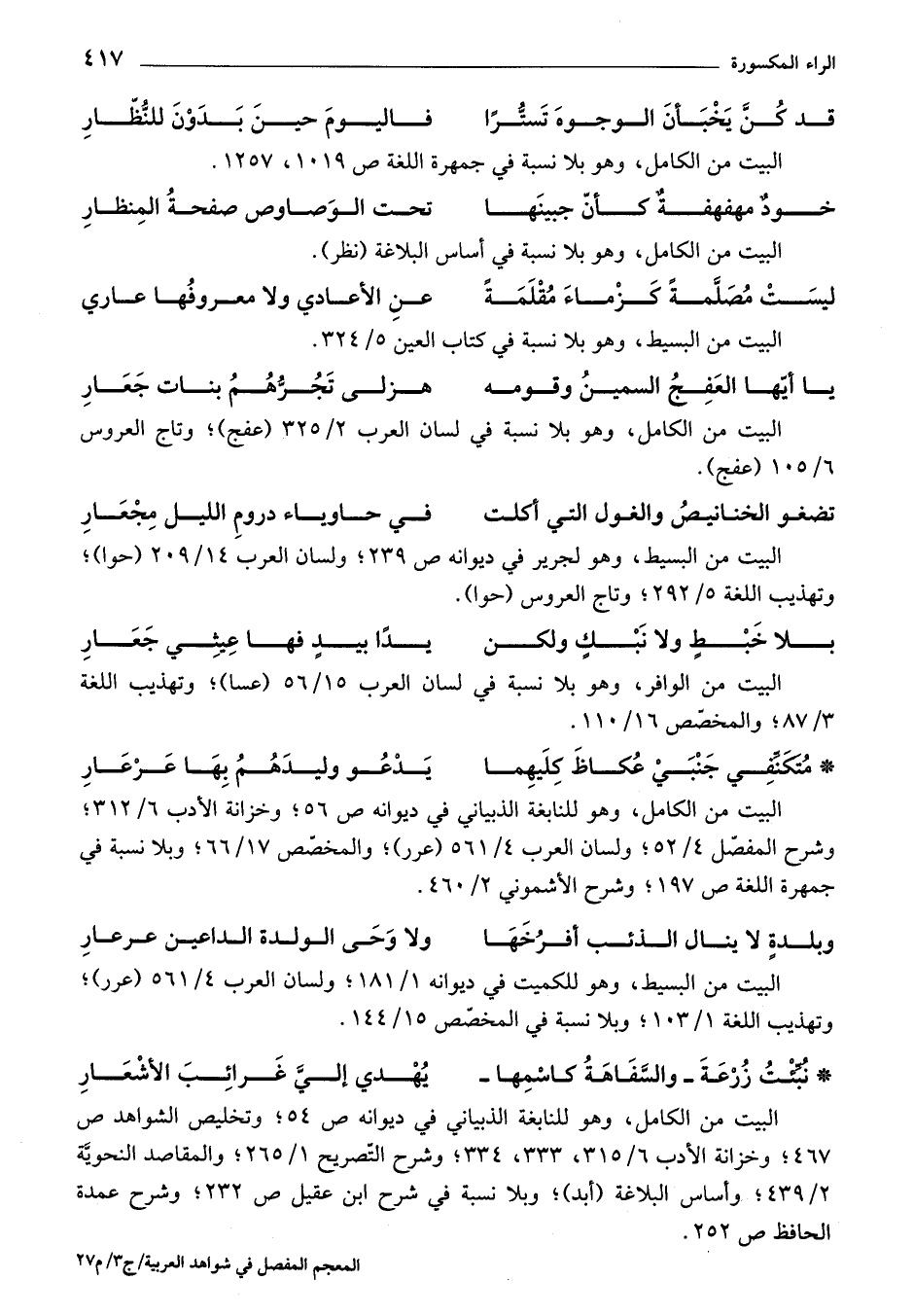 كتاب المعجم المفصل في شواهد العربية (اسم الجزء: 3)