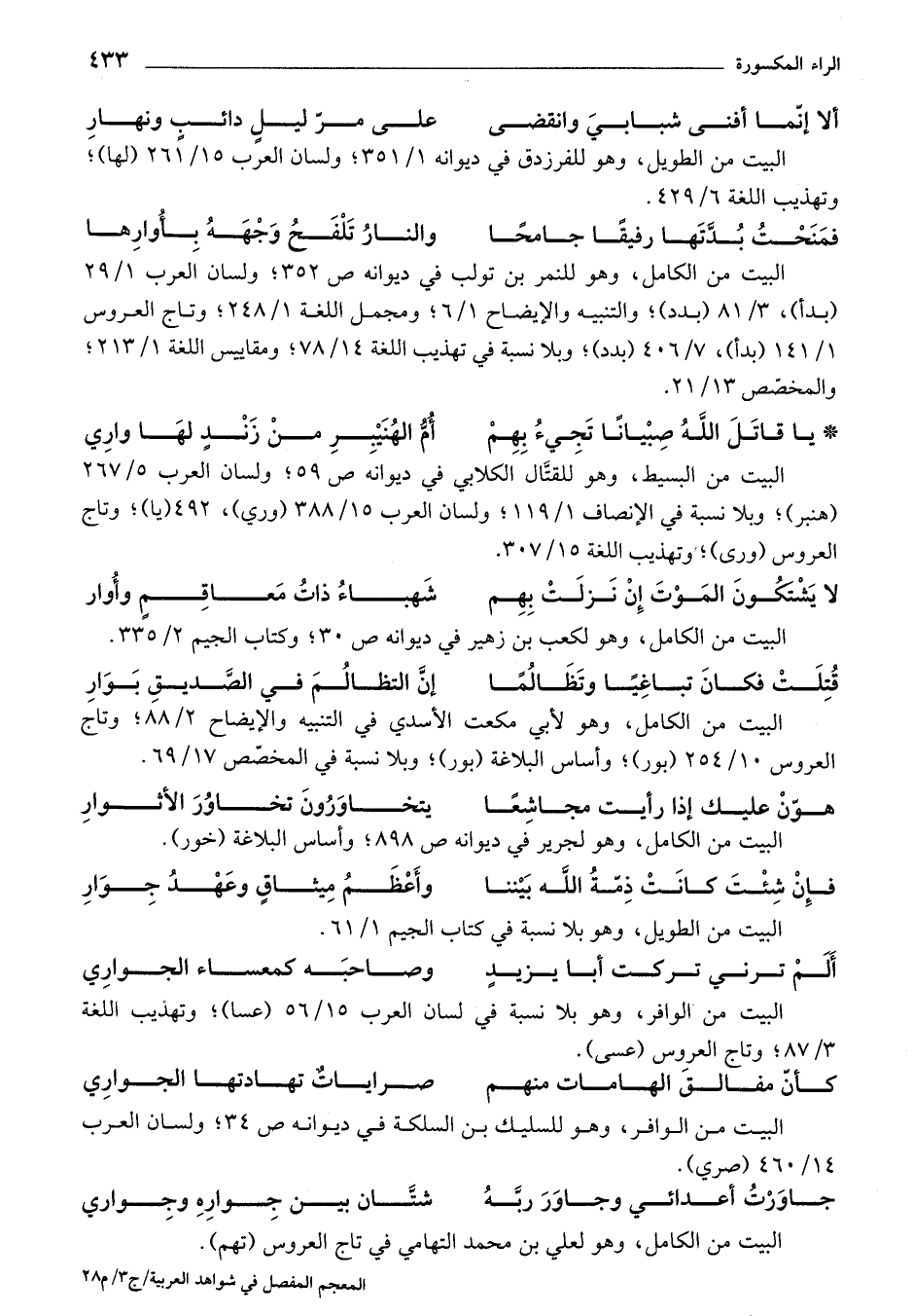 كتاب المعجم المفصل في شواهد العربية (اسم الجزء: 3)