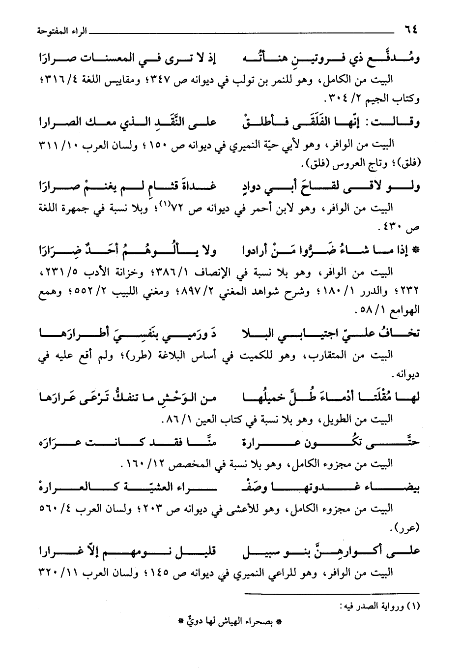 وقالت: إنها الفَلَقَى فأطلقْ على النقد الذي معك الصرارا