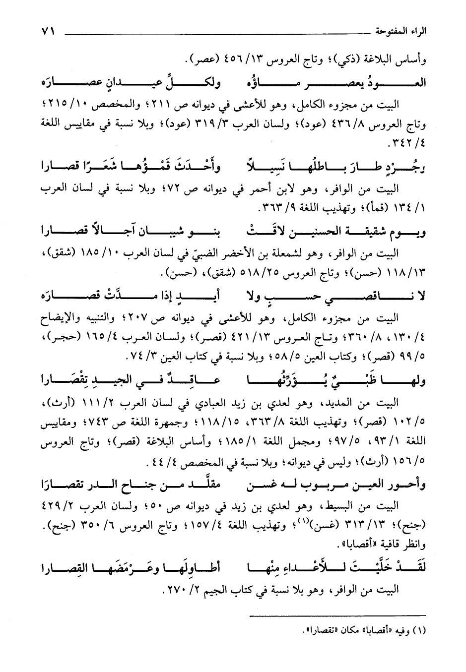(¬1) وفيه «أقصابا» مكان «تقصارا».
