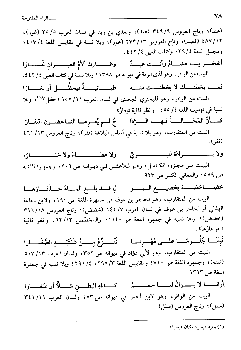 (هند)؛ وتاج العروس 9/ 349 (هند)؛ ولعدي بن زيد في لسان العرب 5/ 35 (غور)، 12/ 487 (قضم)؛ وتاج العروس 13/ 273 (غور)؛ وبلا نسبة في مقاييس اللغة 4/ 407؛ ومجمل اللغة 4/ 29؛ وكتاب العين 4/ 442.