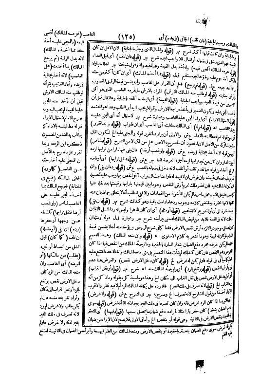 ـــــــــــــــــــــــــــــQيَوْمَ الْجِنَايَةِ وَإِنْ كَانَتْ قَبْلَهَا أَكْثَرُ شَرْحُ م ر (قَوْلُهُ: وَالْمَالُ الَّذِي وَجَبَ بِالْجِنَايَةِ) ؛ لِأَنَّ الْأَقَلَّ إنْ كَانَ الْقِيمَةَ فَهُوَ الَّذِي دَخَلَ فِي ضَمَانِهِ أَوْ الْمَالُ فَلَا وَاجِبَ غَيْرُهُ شَرْحُ م ر (قَوْلُهُ: فَإِنْ تَلِفَ) أَيْ قَبْلَ الْفِدَاءِ (قَوْلُهُ غَرَّمَهُ الْمَالِكُ أَقْصَى قِيمَةٍ) وَلَهُ أَخْذُ بَدَلِ الْقِيمَةِ وَهِيَ لِلْفَيْصُولَةِ وَقَوْلُ شَيْخِنَا م ر إنَّهُ لِلْحَيْلُولَةِ وَلَوْ كَانَ أَمَةً حَرُمَ عَلَيْهِ وَطْؤُهَا غَيْرُ مُسْتَقِيمٍ ق ل (قَوْلُهُ: مِمَّا أَخَذَهُ الْمَالِكُ) أَيْ إنْ كَانَ أَكْثَرَ مِنْ حَقِّهِ وَإِلَّا أَخَذَ جَمِيعَهُ ح ل (قَوْلُهُ: ثُمَّ يَرْجِعُ) فَعُلِمَ أَنَّ الْقَرَارَ عَلَى الْغَاصِبِ وَأَنَّهُ يَضْمَنُ قِيمَةَ الرَّقِيقِ الْمَغْصُوبِ وَأَرْشَ جِنَايَتِهِ