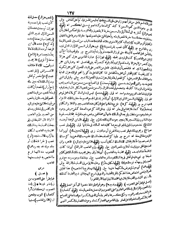 [دَرْسٌ] (فَصْلٌ) فِيمَا يَطْرَأُ عَلَى الْمَغْصُوبِ مِنْ زِيَادَةٍ وَغَيْرِهَا (زِيَادَةُ الْمَغْصُوبِ إنْ كَانَتْ أَثَرًا كَقِصَارَةٍ) لِثَوْبٍ وَطَحْنٍ لِبُرٍّ (فَلَا شَيْءَ لِغَاصِبٍ) بِسَبَبِهَا
