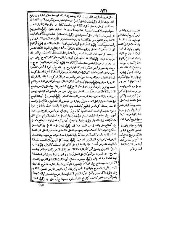 (قَوْلُهُ: بِتَابِعِهَا) أَيْ مَعَ تَابِعِهَا إنْ كَانَ فَلَا يُقَالُ مَفْهُومُهُ أَنَّ الْأَرْضَ الْخَالِيَةَ عَنْ التَّابِعِ لَا شُفْعَةَ فِيهَا ع ش وَالْمُرَادُ بِالتَّابِعِ مَا يَتْبَعُهَا فِي مُطْلَقِ الْبَيْعِ (قَوْلُهُ: كَشَجَرٍ) قَالَ ح ل: هَلْ وَإِنْ نَصَّ عَلَيْهِ مَعَ الْأَرْضِ أَوْ لَا لِأَنَّهُ إذَا نَصَّ عَلَيْهِ صَارَ مُسْتَقِلًّا اُنْظُرْ، وَفِي ع ش عَلَى م ر مَا يَقْتَضِي أَنَّهَا تَثْبُتُ فِيهِ وَلَوْ نَصَّ عَلَى دُخُولِهِ وَأَنَّ التَّنْصِيصَ عَلَيْهِ لَا يُخْرِجُهُ عَنْ التَّبَعِيَّةِ عِنْدَ الْإِطْلَاقِ (قَوْلُهُ: غَيْرِ مُؤَبَّرٍ) أَيْ عِنْدَ الْبَيْعِ فَيُؤْخَذُ بِالشُّفْعَةِ وَلَوْ لَمْ يَتَّفِقْ الْأَخْذُ حَتَّى أَبَّرَ وَعِبَارَةُ م ر غَيْرِ مُؤَبَّرٍ أَيْ عِنْدَ الْبَيْعِ وَإِنْ كَانَ مُؤَبَّرًا عِنْدَ الْأَخْذِ وَكَذَا كُلُّ مَا دَخَلَ فِي الْبَيْعِ ثُمَّ انْقَطَعَتْ تَبَعِيَّتُهُ فَإِنَّهُ يُؤْخَذُ بِالشُّفْعَةِ س ل وَأَمَّا مُؤَبَّرٌ شَرْطُ دُخُولِهِ فَلَا تَثْبُتُ فِيهِ الشُّفْعَةُ لِانْتِفَاءِ التَّبَعِيَّةِ كَمَا فِي ع ش وَمِثْلُ غَيْرِ الْمُؤَبَّرِ أُصُولُ بَقْلٍ يُجَذُّ مُرَّةً بَعْدَ أُخْرَى ح ل بِجَامِعِ الدُّخُولِ فِي الْبَيْعِ (قَوْلُهُ وَبِنَاءٍ وَتَوَابِعِهِ) يَدْخُلُ فِي التَّوَابِعِ مِفْتَاحُ غَلْقٍ مُثْبَتٍ كَمَا تَقَدَّمَ فِي بَابِ الْأُصُولِ (قَوْلُهُ: مِنْ أَبْوَابٍ وَغَيْرِهَا) أَيْ مِنْ كُلِّ مُنْفَصِلٍ تَوَقَّفَ عَلَيْهِ نَفْعٌ مُتَّصِلٌ ح ل كَمِفْتَاحِ غَلْقٍ، وَالْأَعْلَى مِنْ حَجَرَيْ رَحَا ق ل (قَوْلُهُ: فِي بَيْتٍ عَلَى سَقْفٍ) وَلَوْ كَانَ السُّفْلُ مُشْتَرَكًا بَيْنَ اثْنَيْنِ، وَالْعُلْوُ لِأَحَدِهِمَا فَبَاعَهُ وَنَصِيبَهُ مِنْ السُّفْلِ فَالشُّفْعَةُ فِي نَصِيبِهِ مِنْ السُّفْلِ لَا فِي الْعُلْوِ لِأَنَّهُ لَا شَرِكَةَ فِيهِ وَكَذَا لَوْ كَانَتْ الْأَرْضُ مُشْتَرَكَةً وَفِيهَا أَشْجَارٌ لِأَحَدِهِمَا فَبَاعَهُ مَعَ نَصِيبِهِ مِنْهَا فَالشُّفْعَةُ فِي الْأَرْضِ بِحِصَّتِهَا مِنْ الثَّمَنِ لَا فِي الشَّجَرِ اهـ. س ل