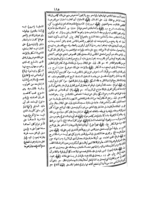 ـــــــــــــــــــــــــــــQفَيَجُوزُ الْمُرُورُ مِنْهَا وَالْجُلُوسُ فِيهَا، وَعَلَيْهَا وَلَوْ لِنَحْوِ بَيْعٍ، وَلَا يَجُوزُ أَخْذُ عِوَضٍ مِنْهُمْ عَلَى ذَلِكَ كَمَا مَرَّ، وَإِنْ قُلْنَا بِالْمُعْتَمَدِ: إنَّ الْحَرِيمَ مَمْلُوكٌ ق ل عَلَى الْجَلَالِ. (قَوْلُهُ: الْأَصْلِيَّةُ) أَيْ: الْغَالِبَةُ احْتِرَازًا عَنْ الْفَرْعِيَّةِ كَالْجُلُوسِ فَلِذَا قَيَّدَهُ بِعَدَمِ التَّضْيِيقِ. (قَوْلُهُ: مُرُورٌ فِيهِ) لِأَنَّهُ وُضِعَ لِذَلِكَ، وَهَذَا مِمَّا عُلِمَ فِي الصُّلْحِ، وَذَكَرَهُ تَوْطِئَةً لِمَا بَعْدَهُ شَرْحُ م ر. (قَوْلُهُ: وَكَذَا جُلُوسٌ لِنَحْوِ حِرْفَةٍ) عِبَارَةُ م ر أَمَّا غَيْرُ الْأَصْلِيَّةِ فَأَشَارَ لَهُ بِقَوْلِهِ، وَيَجُوزُ الْجُلُوسُ فِيهِ وَلَوْ بِوَسَطِهِ لِاسْتِرَاحَةٍ وَمُعَامَلَةٍ وَنَحْوِهَا كَانْتِظَارِ رَفِيقٍ وَسُؤَالٍ. اهـ، فَيَكُونُ قَوْلُهُ: وَكَذَا جُلُوسٌ مَعْنَاهُ، وَكَذَا مِنْ مَنْفَعَةِ الشَّارِعِ جُلُوسٌ إلَخْ كَمَا قَالَ ع ش أَيْ: لَا بِقَيْدِ كَوْنِ الْمَنْفَعَةِ أَصْلِيَّةً. اهـ، وَلَهُ وَضْعُ سَرِيرٍ اُعْتِيدَ وَضْعُهُ فِيهِ فِيمَا يَظْهَرُ، وَيَخْتَصُّ الْجَالِسُ بِمَحَلِّهِ، وَمَحَلِّ أَمْتِعَتِهِ وَمُعَامِلِيهِ، وَلَيْسَ لِغَيْرِهِ أَنْ يُضَيِّقَ عَلَيْهِ فِيهِ بِحَيْثُ يَضُرُّ بِهِ فِي الْكَيْلِ أَوْ الْوَزْنِ وَالْعَطَاءِ وَلَهُ مَنْعُ وَاقِفٍ بِقُرْبِهِ إنْ مَنَعَ رُؤْيَةً أَوْ وُصُولَ مُعَامِلِيهِ إلَيْهِ لَا مَنْ قَعَدَ يَبِيعُ مِثْلَ مَتَاعِهِ وَلَمْ يُزَاحِمْهُ فِيمَا يَخْتَصُّ بِهِ مِنْ الْمَرَافِقِ الْمَذْكُورَةِ م ر، وَقِيَاسُ مَا تَقَدَّمَ أَنَّ مَنْ اسْتَحَقَّ الْجُلُوسَ فِي الْمَسْجِدِ فِي مَكَان مَخْصُوصٍ لِتَعْلِيمِ عِلْمٍ وَنَحْوِهِ كَتَعْلِيمِ مُطَالَعَةٍ وَنَحْوِهَا ثُمَّ جَلَسَ آخَرُ بِالْقُرْبِ مِنْهُ بِحَيْثُ يُضَيِّقُ عَلَيْهِ أَوْ يَرْفَعُ صَوْتَهُ بِحَيْثُ يُشَوِّشُ عَلَيْهِ فِي تَعْلِيمِهِ مُنِعَ مِنْ ذَلِكَ، وَهُوَ الظَّاهِرُ. اهـ. سم، قَالَ ق ل عَلَى الْجَلَالِ وَسَوَاءٌ فِي ذَلِكَ الْمُسْلِمُ وَالْكَافِرُ إلَّا فِي التَّظْلِيلِ عِنْدَ شَيْخِنَا الزِّيَادِيِّ فَمَنَعَ مِنْهُ الْكَافِرَ.