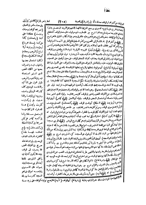 (وَ) شُرِطَ (فِي الصِّيغَةِ لَفْظٌ يُشْعِرُ بِالْمُرَادِ) كَالْعِتْقِ بَلْ أَوْلَى وَفِي مَعْنَاهُ مَا مَرَّ فِي الضَّمَانِ (صَرِيحُهُ) (كَوَقَفْتُ وَسَبَّلْت وَحَبَسْت) كَذَا عَلَى كَذَا (وَتَصَدَّقْت) بِكَذَا عَلَى كَذَا (صَدَقَةً مُحَرَّمَةً) أَوْ مُؤَبَّدَةً (أَوْ مَوْقُوفَةً أَوْ لَا تُبَاعُ أَوْ لَا تُوهَبُ وَجَعَلْته) أَيْ هَذَا الْمَكَانَ (مَسْجِدًا) لِكَثْرَةِ اسْتِعْمَالِ بَعْضِهَا وَاشْتِهَارِهِ فِيهِ وَانْصِرَافِ بَعْضِهَا عَنْ التَّمَلُّكِ الْمَحْضِ الَّذِي اُشْتُهِرَ اسْتِعْمَالُهُ فِيهِ وَقَوْلُهُ كَغَيْرِهِ وَلَا تُوهَبُ بِالْوَاوِ مَحْمُولٌ عَلَى التَّأْكِيدِ وَإِلَّا فَأَحَدُ الْوَصْفَيْنِ كَافٍ كَمَا رَجَّحَهُ الرُّويَانِيُّ وَغَيْرُهُ وَجَزَمَ بِهِ ابْنُ الرِّفْعَةِ، وَلِهَذَا عَبَّرْت بِأَوْ (وَكِنَايَتُهُ) (كَحَرَّمْتُ وَأَبَّدْت) هَذَا لِلْفُقَرَاءِ؛ لِأَنَّ كُلًّا مِنْهُمَا لَا يُسْتَعْمَلُ مُسْتَقِلًّا وَإِنَّمَا يُؤَكَّدُ بِهِ كَمَا مَرَّ فَلَمْ يَكُنْ صَرِيحًا بَلْ كِنَايَةً لِاحْتِمَالِهِ (وَكَتَصَدَّقْتُ) بِهِ (مَعَ إضَافَتِهِ لِجِهَةٍ عَامَّةٍ) كَالْفُقَرَاءِ بِخِلَافِ الْمُضَافِ إلَى مُعَيَّنٍ وَلَوْ جَمَاعَةً فَإِنَّهُ صَرِيحٌ فِي التَّمْلِيكِ الْمَحْضِ فَلَا يَنْصَرِفُ إلَى الْوَقْفِ بِنِيَّتِهِ فَلَا يَكُونُ كِنَايَةً فِيهِ، وَأَلْحَقَ الْمَاوَرْدِيُّ بِاللَّفْظِ أَيْضًا مَا لَوْ بَنَى مَسْجِدًا بِنِيَّتِهِ بِمَوَاتٍ قَالَ الْإِسْنَوِيُّ وَقِيَاسُهُ إجْرَاؤُهُ فِي نَحْوِ الْمَسْجِدِ كَمَدْرَسَةٍ وَرِبَاطٍ وَكَلَامُ الرَّافِعِيِّ فِي إحْيَاءِ الْمَوَاتِ فِي مَسْأَلَةِ حَفْرِ الْبِئْرِ فِيهِ يَدُلُّ لَهُ.