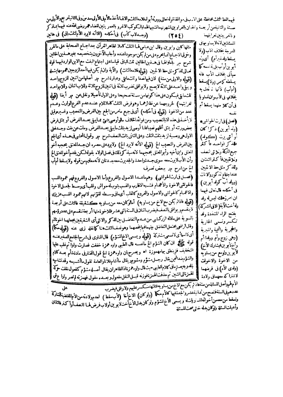 وَهْم مَا عَدَا الْأُصُولَ، وَالْفُرُوعَ وَأَمَّا الْأُصُولُ وَالْفُرُوعُ فَهُمْ عَمُودُ النَّسَبِ فَالْحَوَاشِي الْإِخْوَةُ وَالْأَعْمَامُ، فَشَبَّهَ الْأَقَارِبَ وَالنَّسَبَ بِثَوْبٍ لَهُ حَوَاشٍ وَقَلْبٍ أَيْ وَسَطٍ فَجَعَلَ الْإِخْوَةَ وَالْأَعْمَامَ كَالْحَوَاشِي وَالْأُصُولَ وَالْفُرُوعَ كَالْقَلْبِ أَيْ مَا فِي وَسَطِهِ لِقُوَّتِهِمْ لِأَنَّهُمْ عَمُودُ النَّسَبِ عَزِيزِيٌّ (قَوْلُهُ: فَإِذَا لَمْ يَكُنْ مَعَ الْأَخِ مَنْ يُسَاوِيه) أَمَّا لَوْ كَانَ مَعَهُ مَنْ يُسَاوِيه كَشَقِيقَةٍ فَالثُّلُثُ عَلَى أَرْبَعَةٍ لَا يَنْقَسِمُ وَيُوَافَقُ بِالنِّصْفِ فَيُضْرَبُ اثْنَانِ فِي السِّتَّةِ بِاثْنَيْ عَشَرَ فَلِلْإِخْوَةِ مِنْهَا أَرْبَعَةٌ تَنْقَسِمُ عَلَى عَدَدِ رُءُوسِهِمْ بِالسَّوِيَّةِ عَلَى مَا قَالَهُ الزَّرْكَشِيُّ مِنْ عَدَمِ التَّفَاضُلِ بَيْنَ الذَّكَرِ وَالْأُنْثَى أَيْ الشَّقِيقَيْنِ بِجَعْلِهِمَا إخْوَةً لِأُمٍّ وَقَالَ الرَّافِعِيُّ يُحْتَمَلُ التَّفَاضُلُ بَيْنَهُمَا فِيمَا يَخُصُّهُمَا وَهُوَ نِصْفُ الثُّلُثِ هُنَا كَمَا نَقَلَهُ ز ي عَنْهُ (قَوْلُهُ: حُكْمًا) أَيْ لَا اسْمًا أَيْ لَا تُسَمَّى مُشْتَرَكَةً (قَوْلُهُ: وَيُسَمَّى الْأَخُ الْمَشْئُومُ) قَالَ: الْمُنَاوِيُّ فِي شَرْحِ الْجَامِعِ الصَّغِيرِ عِنْدَ قَوْلِهِ: - صَلَّى اللَّهُ عَلَيْهِ وَسَلَّمَ - إنْ كَانَ الشُّؤْمُ إلَخْ مَا نَصُّهُ قَالَ: الطِّيبِيُّ وَاوُهُ هَمْزَةٌ خُفِّفَتْ فَصَارَتْ وَاوًا، ثُمَّ غَلَبَ عَلَيْهَا التَّخْفِيفُ فَلَمْ يَنْطِقْ بِهَا مَهْمُوزَةً اهـ وَيُصَرَّحُ بِأَنَّ وَاوَه هَمْزَةٌ إلَخْ قَوْلُ الْمُخْتَارِ فِي مَادَّةِ شَأَمَ بَعْدَ كَلَامٍ وَالشُّؤْمُ ضِدُّ الْيُمْنِ يُقَالُ رَجُلٌ مَشْئُومٌ وَمَشُومٌ وَيُقَالُ: مَا أَشْأَمَ فُلَانًا وَالْعَامَّةُ تَقُولُ مَا أَشْيَمَهُ وَقَدْ تَشَاءَمَ بِهِ بِالْمَدِّ وَبِهِ يُعْلَمُ مَا فِي كَلَامِ الطِّيبِيِّ حَيْثُ قَالَ: وَاوُهُ هَمْزَةٌ إذْ الظَّاهِرُ أَنْ يُقَالَ أَصْلُهُ مَشْئُومٌ كَمَفْعُولٍ نُقِلَتْ حَرَكَةُ الْهَمْزَةِ إلَى الشِّينِ ثُمَّ حُذِفَتْ الْهَمْزَةُ فَوَزْنُهُ قَبْلَ النَّقْلِ مَفْعُولٌ وَبَعْدَهُ مَفْعُولٌ فَهَمْزَتُهُ لَمْ تَصِرْ وَاوًا ع ش عَلَى م ر