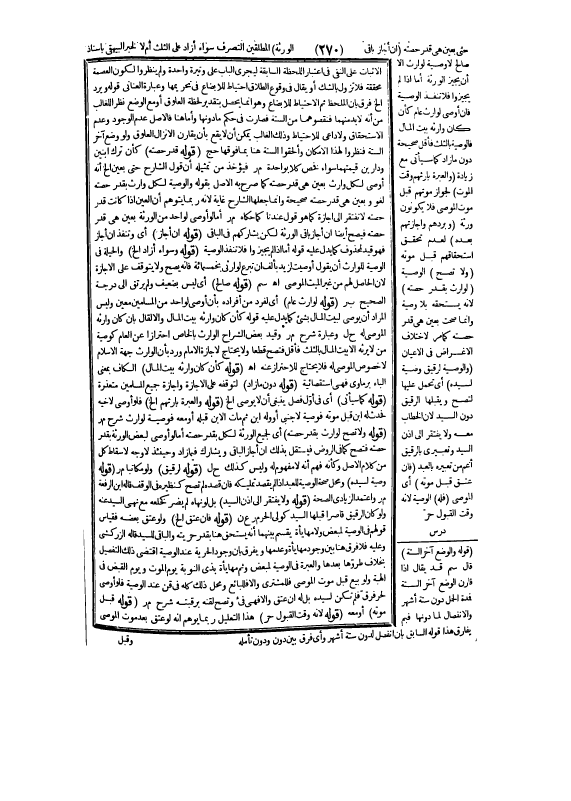 (قَوْلُهُ: قَدْرُ حِصَّتِهِ) كَأَنْ تَرَكَ ابْنَيْنِ وَدَارَيْنِ قِيمَتُهُمَا سَوَاءٌ فَخَصَّ كُلًّا بِوَاحِدَةٍ م ر فَيُؤْخَذُ مِنْ تَمْثِيلِهِ أَنَّ قَوْلَ الشَّارِحِ حَتَّى بِعَيْنٍ إلَخْ أَنَّهُ أَوْصَى لِكُلِّ وَارِثٍ بِعَيْنٍ، هِيَ قَدْرُ حِصَّتِهِ كَمَا صَرَّحَ بِهِ الْأَصْلُ بِقَوْلِهِ: وَالْوَصِيَّةُ لِكُلِّ وَارِثٍ بِقَدْرِ حِصَّتِهِ لَغْوٌ وَبِعَيْنٍ هِيَ قَدْرُ حِصَّتِهِ صَحِيحَةٌ وَإِنَّمَا جَعَلَهَا الشَّارِحُ غَايَةً؛ لِأَنَّهُ رُبَّمَا يُتَوَهَّمُ أَنَّ الْعَيْنَ إذَا كَانَتْ قَدْرَ حِصَّتِهِ لَا تَفْتَقِرُ إلَى إجَازَةٍ كَمَا هُوَ قَوْلٌ عِنْدَنَا كَمَا حَكَاهُ م ر أَمَّا لَوْ أَوْصَى لِوَاحِدٍ مِنْ الْوَرَثَةِ بِعَيْنٍ هِيَ قَدْرُ حِصَّتِهِ فَيَصِحُّ أَيْضًا إنْ أَجَازَ بَاقِي الْوَرَثَةِ لَكِنْ يُشَارِكُهُمْ فِي الْبَاقِي (قَوْلُهُ: إنْ أَجَازَ) ، أَيْ وَتَنْفُذُ إنْ أَجَازَ فَهُوَ قَيْدٌ لِمَحْذُوفٍ كَمَا يَدُلُّ عَلَيْهِ قَوْلُهُ: أَمَّا إذَا لَمْ يُجِيزُوا فَلَا تَنْفُذُ الْوَصِيَّةُ (قَوْلُهُ: وَسَوَاءٌ أَزَادَ إلَخْ) وَالْحِيلَةُ فِي الْوَصِيَّةِ لِلْوَارِثِ أَنْ يَقُولَ: أَوْصَيْت لِزَيْدٍ بِأَلْفٍ إنْ تَبَرَّعَ لِوَارِثِي بِخَمْسِمِائَةٍ، فَإِنَّهُ يَصِحُّ وَلَا يَتَوَقَّفُ عَلَى الْإِجَازَةِ؛ لِأَنَّ الْحَاصِلَ لَهُمْ مِنْ غَيْرِ الْمَيِّتِ الْمُوصِي اهـ سم (قَوْلُهُ: صَالِحٍ) أَيْ لَيْسَ بِضَعِيفٍ وَلَمْ يَرْتَقِ إلَى دَرَجَةِ الصَّحِيحِ ب ر (قَوْلُهُ: لِوَارِثٍ عَامٍّ) ، أَيْ لِفَرْدٍ مِنْ أَفْرَادِهِ بِأَنْ أَوْصَى لِوَاحِدٍ مِنْ الْمُسْلِمِينَ مُعَيَّنٍ وَلَيْسَ الْمُرَادُ أَنْ يُوصِيَ لِبَيْتِ الْمَالِ بِشَيْءٍ كَمَا يَدُلُّ عَلَيْهِ قَوْلُهُ: كَأَنْ كَانَ وَارِثُهُ بَيْتَ الْمَالِ وَإِلَّا لَقَالَ بِأَنْ كَانَ وَارِثُهُ الْمُوصَى لَهُ ح ل وَعِبَارَةُ شَرْحِ م ر وَقَيَّدَ بَعْضُ الشُّرَّاحِ الْوَارِثَ بِالْخَاصِّ احْتِرَازًا عَنْ الْعَامِّ كَوَصِيَّةِ مَنْ لَا يَرِثُهُ إلَّا بَيْتُ الْمَالِ بِالثُّلُثِ فَأَقَلَّ فَتَصِحُّ قَطْعًا وَلَا يَحْتَاجُ لِإِجَازَةِ الْإِمَامِ وَرُدَّ بِأَنَّ الْوَارِثَ جِهَةُ الْإِسْلَامِ لَا خُصُوصُ الْمُوصَى لَهُ فَلَا يَحْتَاجُ لِلِاحْتِرَازِ عَنْهُ اهـ