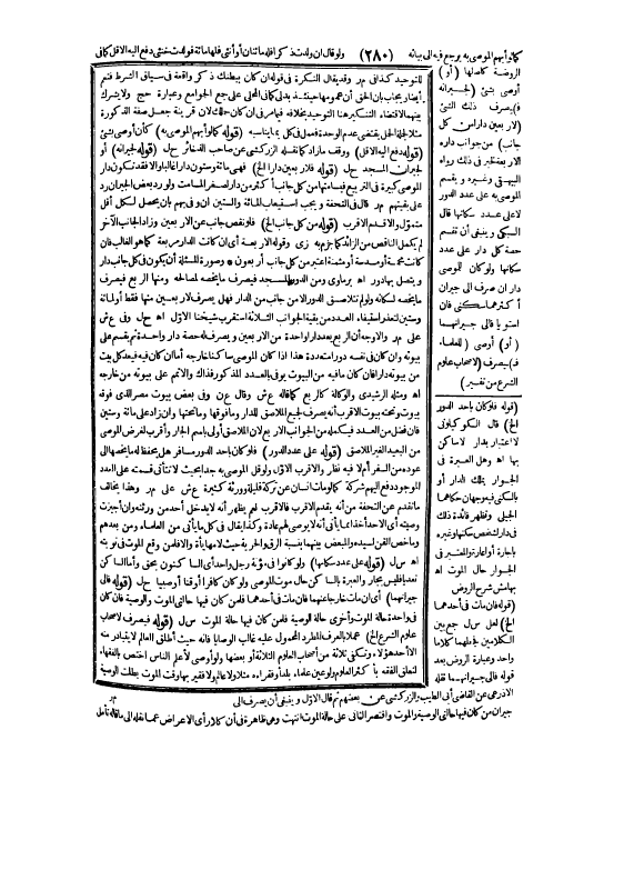 وَصُورَةُ الْمَسْأَلَةِ أَنْ يَكُونَ فِي كُلِّ جَانِبٍ دَارٌ وَيَتَّصِلُ بِهَا دُورٌ اهـ بِرْمَاوِيٌّ وَمِنْ الدُّورِ الْمَسْجِدُ فَيُصْرَفُ مَا يَخُصُّهُ لِمَصَالِحِهِ، وَمِنْهَا الرُّبُعُ فَيُصْرَفُ مَا يَخُصُّهُ لِسُكَّانِهِ وَلَوْ لَمْ تَتَلَاصَقْ الدُّورُ إلَّا مِنْ جَانِبٍ مِنْ الدَّارِ فَهَلْ يُصْرَفُ لِأَرْبَعِينَ مِنْهَا فَقَطْ، أَوْ لِمِائَةٍ وَسِتِّينَ لِتَعَذُّرِ اسْتِيفَاءِ الْعَدَدِ مِنْ بَقِيَّةِ الْجَوَانِبِ الثَّلَاثَةِ اسْتَقْرَبَ شَيْخُنَا الْأَوَّلَ اهـ ح ل وَفِي ع ش عَلَى م ر وَالْأَوْجَهُ أَنَّ الرُّبُعَ يُعَدُّ دَارًا وَاحِدَةً مِنْ الْأَرْبَعِينَ وَيُصْرَفُ لَهُ حِصَّةُ دَارٍ وَاحِدَةٍ، ثُمَّ يُقْسَمُ عَلَى بُيُوتِهِ وَإِنْ كَانَ فِي نَفْسِهِ دَارًا مُتَعَدِّدَةً هَذَا إذَا كَانَ الْمُوصِي سَاكِنًا خَارِجَهُ أَمَّا إذَا كَانَ فِيهِ فَيُعَدُّ كُلُّ بَيْتٍ مِنْ بُيُوتِهِ دَارًا فَإِنْ كَانَ مَا فِيهِ مِنْ الْبُيُوتِ يُوَفِّي بِالْعَدَدِ الْمَذْكُورِ فَذَاكَ وَإِلَّا تُمِّمَ عَلَى بُيُوتِهِ مِنْ خَارِجِهِ اهـ. وَمَثَّلَهُ الرَّشِيدِيُّ وَالْوَكَالَةُ كَالرُّبُعِ كَمَا قَالَهُ ع ش وَقَالَ ع ن وَفِي بَعْضِ بُيُوتِ مِصْرَ الَّذِي فَوْقَهُ بُيُوتٌ وَتَحْتَهُ بُيُوتٌ الْأَقْرَبُ أَنَّهُ يُصْرَفُ لِجَمِيعِ الْمُلَاصِقِ لِلدَّارِ وَمَا فَوْقَهَا وَمَا تَحْتَهَا وَإِنْ زَادَ عَلَى مِائَةٍ وَسِتِّينَ فَإِنْ فَضَلَ مِنْ الْعَدَدِ فَيُكَمِّلُهُ مِنْ الْجَوَانِبِ الْأَرْبَعِ؛ لِأَنَّ اللَّاصِقَ أَوْلَى بِاسْمِ الْجَارِ وَأَقْرَبُ لِغَرَضِ الْمُوصِي مِنْ الْبَعِيدِ الْغَيْرِ الْمُلَاصِقِ (قَوْلُهُ: عَلَى عَدَدِ الدُّورِ) فَلَوْ كَانَ بِأَحَدِ الدُّورِ مُسَافِرٌ هَلْ يُحْفَظُ لَهُ مَا يَخُصُّهَا إلَى عَوْدِهِ مِنْ السَّفَرِ أَمْ لَا فِيهِ نَظَرٌ وَالْأَقْرَبُ الْأَوَّلُ وَلَوْ قَلَّ الْمُوصَى بِهِ جِدًّا بِحَيْثُ لَا تَتَأَتَّى قِسْمَتُهُ عَلَى الْعَدَدِ الْمَوْجُودِ دُفِعَ إلَيْهِمْ شَرِكَةً كَمَا لَوْ مَاتَ إنْسَانٌ عَنْ تَرِكَةٍ قَلِيلَةٍ وَوَرَثَةٍ كَثِيرَةٍ ع ش عَلَى م ر وَهَذَا يُخَالِفُ مَا تَقَدَّمَ عَنْ التُّحْفَةِ مِنْ أَنَّهُ يُقَدَّمُ الْأَقْرَبُ فَالْأَقْرَبُ نَعَمْ يَظْهَرُ أَنَّهُ لَا يَدْخُلُ أَحَدٌ مِنْ وَرَثَتِهِ وَإِنْ أُجِيزَتْ وَصِيَّتُهُ، أَيْ الْأَحَدِ أَخْذًا مِمَّا يَأْتِي أَنَّهُ لَا يُوصَى لَهُمْ عَادَةً وَكَذَا يُقَالُ: فِي كُلِّ مَا يَأْتِي مِنْ الْعُلَمَاءِ وَمَنْ بَعْدَهُمْ وَمَا خَصَّ الْقِنَّ لِسَيِّدِهِ. وَالْمُبَعَّضَ بَيْنَهُمَا بِنِسْبَةِ الرِّقِّ وَالْحُرِّيَّةِ حَيْثُ لَا مُهَايَأَةَ وَإِلَّا فَلِمَنْ وَقَعَ الْمَوْتُ فِي نَوْبَتِهِ اهـ س ل