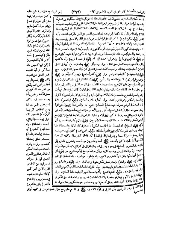 وَأُجِيبَ أَيْضًا بِأَنَّ الْمُرَادَ مَا حَصَلَ لَنَا بِلَا صُورَةِ عَقْدٍ، وَالْهَدِيَّةُ بِصُورَةِ عَقْدٍ فَلَا يَصْدُقُ تَعْرِيفُ الْفَيْءِ عَلَيْهَا فَلَا تَكُونُ فَيْئًا وَلَا غَنِيمَةً كَمَا فِي شَرْحِ م ر. (قَوْلُهُ: فَإِنَّهُ لَيْسَ بِفَيْءٍ إلَخْ) بَلْ هُوَ لِمَنْ أُهْدِيَ إلَيْهِ اهـ. (قَوْلُهُ: فِي غَيْرِ الْحَرْبِ) وَأَمَّا مَا أَهْدَوْهُ وَالْحَرْبُ قَائِمَةٌ فَهُوَ غَنِيمَةٌ؛ لِأَنَّهُ فِي مَعْنَى الْقِتَالِ س ل وَسَيَأْتِي. (قَوْلُهُ: وَمَا جَلَوْا عَنْهُ) أَيْ: قَبْلَ تَقَابُلِ الْجَيْشَيْنِ أَمَّا مَا جَلَوْا عَنْهُ بَعْدَ التَّقَابُلِ فَغَنِيمَةٌ؛ لِأَنَّهُ لَمَّا حَصَلَ التَّقَابُلُ كَانَ بِمَنْزِلَةِ حُصُولِ الْقِتَالِ فَلَمْ يُرَدَّ حَجّ. (قَوْلُهُ: وَلَوْ لِغَيْرِ خَوْفٍ) كَأَنْ تَعِبَتْ دَوَابُّهُمْ س ل. (قَوْلُهُ كَضُرٍّ أَصَابَهُمْ) وَلَوْ مِنْ كُفَّارٍ آخَرِينَ. (قَوْلُهُ: هُوَ أَعَمُّ مِنْ قَوْلِهِ: وَذِمِّيٌّ) لِشُمُولِهِ الْمُعَاهَدَ وَالْمُسْتَأْمَنَ. (قَوْلُهُ: وَكَذَا الْفَاضِلُ إلَخْ) بِأَنْ كَانَ الْوَارِثُ لَا يُرَدُّ عَلَيْهِ كَأَحَدِ الزَّوْجَيْنِ فَإِنْ كَانَ مِمَّنْ يُرَدُّ عَلَيْهِ رُدَّ عَلَيْهِ الْفَاضِلُ عَلَى الْأَوْجَهِ كَالْمُسْلِمِ شَرْحُ الْفُصُولِ. وَعِبَارَةُ سم وَهَلْ شَرْطُ هَذَا انْتِظَامُ بَيْتِ الْمَالِ حَتَّى لَوْ لَمْ يَنْتَظِمْ رُدَّ الْفَاضِلُ عَلَى الْوَارِثِ كَمَا فِي الْمُسْلِمِ؟ فِيهِ نَظَرٌ، ثُمَّ رَأَيْت فِي شَرْحِ الْفُصُولِ لِلشَّارِحِ مَا نَصُّهُ: وَإِطْلَاقُ الْأَصْحَابِ الْقَوْلَ بِالرَّدِّ وَبِإِرْثِ ذَوِي الْأَرْحَامِ يَقْتَضِي أَنَّهُ لَا فَرْقَ بَيْنَ الْمُسْلِمِ وَالْكَافِرِ وَهُوَ ظَاهِرٌ. وَاعْتَمَدَ س ل أَنَّ الرَّدَّ خَاصٌّ بِالْمُسْلِمِينَ. (قَوْلُهُ: فَيُخَمَّسُ) خِلَافًا لِلْأَئِمَّةِ الثَّلَاثِ فِي قَوْلِهِمْ: يُصْرَفُ جَمِيعُهُ لِمَصَالِحِ الْمُسْلِمِينَ شَرْحُ م ر وَانْظُرْ بِمَاذَا يُجِيبُونَ عَنْ الْآيَةِ. وَأَجَابَ بَعْضُ عُلَمَاءِ الْمَالِكِيَّةِ بِأَنَّ الدَّفْعَ لِلْمَذْكُورِينَ فِي الْآيَةِ مِنْ جُمْلَةِ الْمَصَالِحِ وَقَدْ أَخَذُوا بِظَاهِرِ الْآيَةِ؛ فَإِنَّ ظَاهِرَهَا أَنَّ جَمِيعَ الْفَيْءِ يُصْرَفُ لِلْمَذْكُورِينَ فِي آيَتِهِ وَيَدُلُّ لَنَا الْقِيَاسُ عَلَى الْغَنِيمَةِ بِجَامِعِ أَنَّ كُلًّا رَاجِعٌ إلَيْنَا مِنْ الْكُفَّارِ وَاخْتِلَافُ السَّبَبِ بِالْقِتَالِ وَعَدَمِهِ لَا يُؤَثِّرُ ع ن. (قَوْلُهُ: وَإِنْ لَمْ يَكُنْ فِيهَا تَخْمِيسٌ) أَيْ: ذِكْرُهُ. (قَوْلُهُ يَقْسِمُ لَهُ) أَيْ: لِنَفْسِهِ أَرْبَعَةَ أَخْمَاسِهِ لَكِنْ لَمْ يَأْخُذْهَا بَلْ كَانَ يَتْرُكُهَا مَعَ اسْتِحْقَاقِهِ لَهَا عَبْدُ الْبَرِّ وَبِرْمَاوِيٌّ. فَالْمُرَادُ أَنَّهُ كَانَ يَجُوزُ لَهُ أَنْ يَأْخُذَ ذَلِكَ.