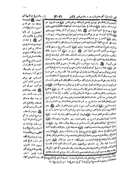 (قَوْلُهُ: ثُمَّ بَنِي زُهْرَةَ) ؛ لِأَنَّهُمْ أَخْوَالُ النَّبِيِّ - صَلَّى اللَّهُ عَلَيْهِ وَسَلَّمَ - وَقَوْلُهُ: ثُمَّ بَنِي تَيْمٍ؛ لِأَنَّ أَبَا بَكْرٍ وَعَائِشَةَ مِنْهُمْ بِرْمَاوِيٌّ.