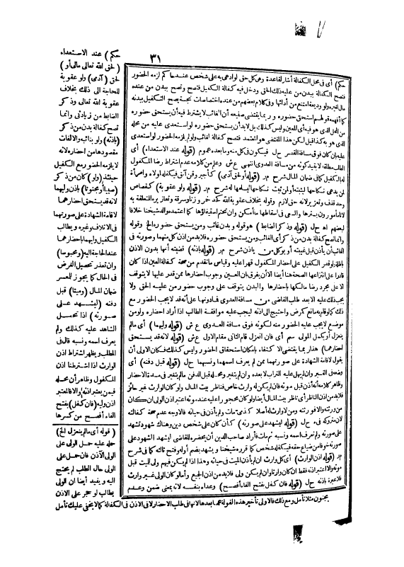 ـــــــــــــــــــــــــــــQأَيْ: فِي مَحَلِّ الْكَفَالَةِ أَشَارَ لِقَاعِدَةٍ، وَهِيَ كُلُّ حَقٍّ لَوْ اُدُّعِيَ بِهِ عَلَى شَخْصٍ عِنْدَ حَاكِمٍ لَزِمَهُ الْحُضُورُ فَتَصِحُّ الْكَفَالَةُ بِبَدَنِ مَنْ عَلَيْهِ ذَلِكَ الْحَقُّ وَدَخَلَ فِيهِ كَفَالَةُ الْكَفِيلِ فَتَصِحُّ، وَتَصِحُّ بِبَدَنِ مَنْ عِنْدَهُ مَالٌ لِغَيْرِهِ، وَلَوْ وَدِيعَةً امْتَنَعَ مِنْ أَدَائِهَا وَفِي كَلَامِ بَعْضِهِمْ مَنْ عِنْدَهُ اخْتِصَاصَاتٌ نَجِسَةٌ يَصِحُّ التَّكْفِيلُ بِبَدَنِهِ كَمَا أَفْهَمَهُ قَوْلُهُمْ اُسْتُحِقَّ حُضُورُهُ وَرُبَّمَا يَقْتَضِي صَنِيعُهُ أَنَّ الْغَائِبَ لَا يُشْتَرَطُ فِيهِ أَنْ يُسْتَحَقُّ حُضُورُهُ مِنْ الْمَحَلِّ الَّذِي هُوَ فِيهِ أَيْ: الْمُعَيَّنِ وَلَيْسَ كَذَلِكَ، بَلْ لَا بُدَّ أَنْ يُسْتَحَقَّ حُضُورُهُ لَوْ اسْتَعْدَى عَلَيْهِ مِنْ مَحَلِّهِ الَّذِي هُوَ بِهِ كَذَا قِيلَ لَكِنَّ هَذَا الْمُقْتَضَى هُوَ الْمُعْتَمَدُ فَتَصِحُّ كَفَالَةُ الْغَائِبِ، وَلَوْ لَمْ يَلْزَمْهُ الْحُضُورُ لَوْ اسْتَعْدَى عَلَيْهِ بِأَنْ كَانَ فَوْقَ مَسَافَةِ الْقَصْرِ ح ل فَيَكُونُ فِي كُلٍّ مِنْهُ وَمَا بَعْدَهُ عُمُومٌ.