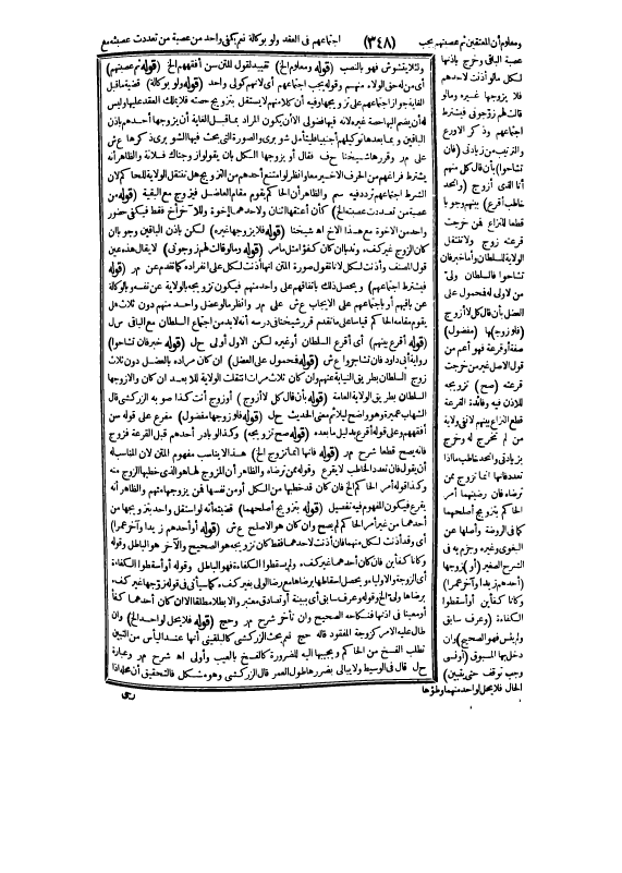 ـــــــــــــــــــــــــــــQبِالنَّصْبِ. (قَوْلُهُ وَمَعْلُومٌ إلَخْ) تَقْيِيدُ لِقَوْلِ الْمَتْنِ سُنَّ أَفْقَهُهُمْ إلَخْ (قَوْلُهُ ثُمَّ عَصَبَتَهُمْ) أَيْ مَنْ لَهُ حَقُّ الْوَلَاءِ مِنْهُمْ، وَقَوْلُهُ يَجِبُ اجْتِمَاعُهُمْ أَيْ لِأَنَّهُمْ كَوَلِيٍّ وَاحِدٍ. (قَوْلُهُ وَلَوْ بِوَكَالَةٍ) قَضِيَّةُ مَا قَبْلَ الْغَايَةِ جَوَازُ اجْتِمَاعِهِمْ عَلَى تَزْوِيجِهَا، وَفِيهِ أَنَّ كُلًّا مِنْهُمْ لَا يَسْتَقِلُّ بِتَزْوِيجِ حِصَّتِهِ، فَلَا يَمْلِكُ الْعَقْدَ عَلَيْهَا وَلَيْسَ لَهُ أَنْ يَضُمَّ إلَيْهَا حِصَّةَ غَيْرِهِ لِأَنَّهُ فِيهَا فُضُولِيٌّ، إلَّا أَنْ يَكُونَ الْمُرَادُ بِمَا قَبْلَ الْغَايَةِ أَنْ يُزَوِّجَهَا أَحَدُهُمْ بِإِذْنِ الْبَاقِينَ، وَبِمَا بَعْدَهَا تَوْكِيلُهُمْ أَجْنَبِيًّا فَلْيُتَأَمَّلْ شَوْبَرِيٌّ