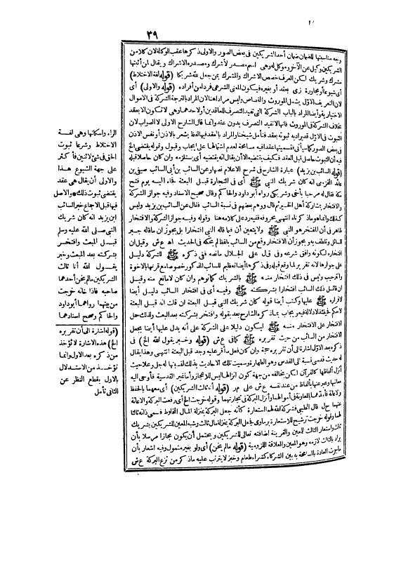 وَقَوْلُهُ: وَفِيهِ جَوَازُ الشَّرِكَةِ وَالِافْتِخَارِ إلَخْ ظَاهِرٌ فِي أَنَّ الْمُفْتَخِرَ هُوَ النَّبِيُّ - صَلَّى اللَّهُ عَلَيْهِ وَسَلَّمَ - وَلَا يَتَعَيَّنُ أَنَّ فِيمَا قَالَهُ النَّبِيُّ افْتِخَارًا، بَلْ يَجُوزُ أَنَّ مَا قَالَهُ جَبْرٌ لِلسَّائِلِ وَتَلَطُّفٌ بِهِ وَيَجُوزُ أَنَّ الِافْتِخَارَ وَقَعَ مِنْ السَّائِبِ بِلَفْظٍ لَمْ يَحْكِهِ فِي الْحَدِيثِ. اهـ. ع ش وَقِيلَ إنَّ افْتِخَارَهُ لِكَوْنِهِ وَافَقَ شَرْعَهُ وَفِي ق ل عَلَى الْجَلَالِ مَا نَصُّهُ فَفِي ذِكْرِهِ - صَلَّى اللَّهُ عَلَيْهِ وَسَلَّمَ - لِلشَّرِكَةِ دَلِيلٌ عَلَى جَوَازِهَا؛ لِأَنَّهُ تَقْرِيرٌ لِمَا وَقَعَ قَبْلَهُ وَفِي ذِكْرِهَا أَيْضًا تَعْظِيمٌ لِلسَّائِبِ الْمَذْكُورِ خُصُوصًا مَعَ قَرْنِهَا بِالْأُخُوَّةِ وَالتَّرْحِيبِ وَلَيْسَ فِي ذَلِكَ افْتِخَارٌ مِنْهُ - صَلَّى اللَّهُ عَلَيْهِ وَسَلَّمَ - بِالشَّرِيكِ كَمَا تُوُهِّمَ، وَإِنْ كَانَ لَا مَانِعَ مِنْهُ وَقِيلَ إنَّ قَائِلَ ذَلِكَ السَّائِبُ افْتِخَارًا بِشَرِكَتِهِ - صَلَّى اللَّهُ عَلَيْهِ وَسَلَّمَ - وَفِيهِ أَيْ: فِي افْتِخَارِ السَّائِبِ دَلِيلٌ أَيْضًا لِإِقْرَارِهِ - صَلَّى اللَّهُ عَلَيْهِ وَسَلَّمَ - عَلَيْهَا وَكَتَبَ أَيْضًا قَوْلُهُ: كَانَ شَرِيكَ النَّبِيِّ قَبْلَ الْبَعْثَةِ إنْ قُلْتَ: إنَّهُ قَبْلَ الْبَعْثَةِ لَا حُكْمَ فَحِينَئِذٍ لَا دَلَالَةَ فِيهِ وَيُجَابُ بِمَا ذَكَرَهُ الشَّارِحُ بَعْدَ قَوْلِهِ وَافْتَخَرَ بِشَرِكَتِهِ بَعْدَ الْبَعْثِ وَلِذَلِكَ حُمِلَ الِافْتِخَارُ عَلَى الِافْتِخَارِ مِنْهُ - صَلَّى اللَّهُ عَلَيْهِ وَسَلَّمَ - لِيَكُونَ دَلِيلًا عَلَى الشَّرِكَةِ عَلَى أَنَّهُ يَدُلُّ عَلَيْهَا أَيْضًا بِجَعْلِ الِافْتِخَارِ مِنْ السَّائِبِ مِنْ حَيْثُ تَقْرِيرُهُ - صَلَّى اللَّهُ عَلَيْهِ وَسَلَّمَ - كَمَا فِي ع ش.