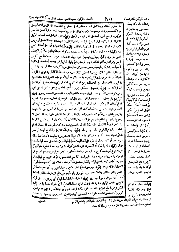 وَمَحَلُّهُ إذَا لَمْ يَكُنْ ذَلِكَ بِحَضْرَتِهِ وَإِلَّا صُدِّقَ الْوَكِيلُ لِنِسْبَةِ التَّقْصِيرِ حِينَئِذٍ لِلْمُوَكِّلِ بِتَرْكِهِ الْإِشْهَادَ، وَهَذَا بِخِلَافِ مَا لَوْ وَكَّلَهُ بِقَبْضِ حَقِّهِ مِنْ زَيْدٍ، فَادَّعَى زَيْدٌ دَفْعَهُ لَهُ وَصَدَّقَهُ الْمُوَكِّلُ، وَأَنْكَرَهُ الْوَكِيلُ فَإِنَّهُ يُصَدَّقُ عَلَى مُوَكِّلِهِ. وَسَيَأْتِي فِي الْوَصِيَّةِ أَنَّ قَيِّمَ الْيَتِيمِ وَوَصِيَّهُ لَا يُقْبَلُ دَعْوَاهُمَا دَفْعَ الْمَالَ إلَيْهِ بَعْدَ رُشْدِهِ (وَلِمَنْ لَا يُصَدَّقُ فِي أَدَاءً) كَمُسْتَعِيرٍ وَغَاصِبٍ وَمَدِينٍ (تَأْخِيرُهُ؛ لِإِشْهَادٍ بِهِ) أَيْ: بِالْأَدَاءِ؛ لِأَنَّهُ لَا يُكْتَفَى فِيهِ بِيَمِينِهِ بِخِلَافِ مَنْ يُصَدَّقُ فِيهِ كَوَكِيلٍ وَوَدِيعٍ.