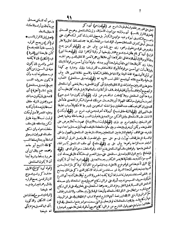 (فَصْلٌ) فِي الْإِقْرَارِ بِالنَّسَبِ لَوْ (أَقَرَّ) مَنْ يَصِحُّ إقْرَارُهُ (بِنَسَبٍ فَإِنْ أَلْحَقَهُ بِنَفْسِهِ) كَأَنْ قَالَ: هَذَا ابْنِي (شُرِطَ) فِيهِ (إمْكَانٌ) بِأَنْ لَا يُكَذِّبَهُ الْحِسُّ وَالشَّرْعُ، بِأَنْ يَكُونَ دُونَهُ فِي السِّنِّ بِزَمَنٍ يُمْكِنُ فِيهِ كَوْنُهُ ابْنَهُ وَأَنْ لَا يَكُونَ مَعْرُوفَ النَّسَبِ بِغَيْرِهِ. (وَتَصْدِيقٌ مُسْتَلْحَقٌ) بِفَتْحِ الْحَاءِ (أَهْلٌ لَهُ) أَيْ لِلتَّصْدِيقِ بِأَنْ يَكُونَ حَيًّا غَيْرَ صَبِيٍّ وَمَجْنُونٍ؛ لِأَنَّ لَهُ حَقًّا فِي نَسَبِهِ فَإِنْ لَمْ يُصَدِّقْهُ بِأَنْ كَذَّبَهُ، وَعَلَيْهِ اقْتَصَرَ الْأَصْلُ أَوْ سَكَتَ لَمْ يَثْبُتْ نَسَبُهُ إلَّا بِبَيِّنَةٍ فَإِنْ لَمْ تَكُنْ بَيِّنَةٌ حَلَّفَهُ فَإِنْ حَلَفَ سَقَطَتْ دَعْوَاهُ، وَإِنْ نَكَلَ حَلَفَ الْمُدَّعِي وَثَبَتَ نَسَبُهُ وَلَوْ تَصَادَقَا ثُمَّ رَجَعَا لَمْ يَسْقُطْ النَّسَبُ، كَمَا قَالَهُ الشَّيْخُ أَبُو حَامِدٍ وَصَحَّحَهُ جَمْعٌ، وَقَالَ ابْنُ أَبِي هُرَيْرَةَ يَسْقُطُ، وَشُرِطَ أَيْضًا أَنْ لَا يَكُونَ الْمُسْتَلْحَقُ