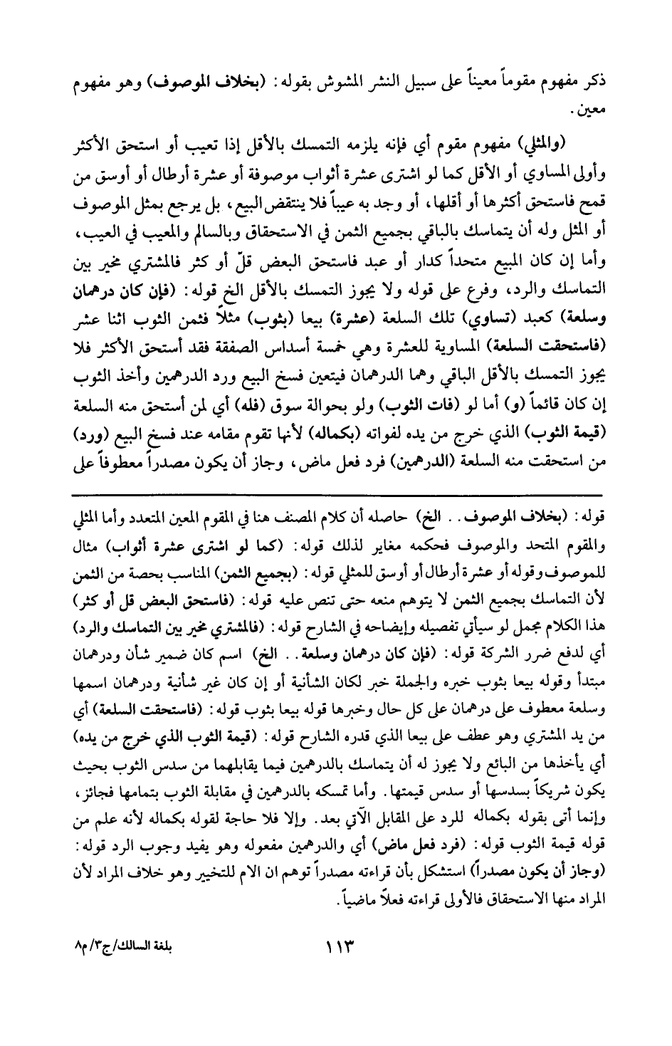قوله : 16 ( كما لو اشترى عشرة أثواب ) : مثال للموصوف وقوله أو عشرة أرطال أو أوسق مثال للمثلى .