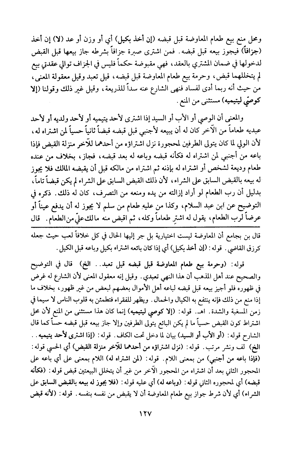 قوله : 16 ( إن أخذ بكيل ) : أي إذا كان بائعه اشتراه بكيل وباعه قبل أن يقبضه سواء باعه جزافاً أو على الكيل .