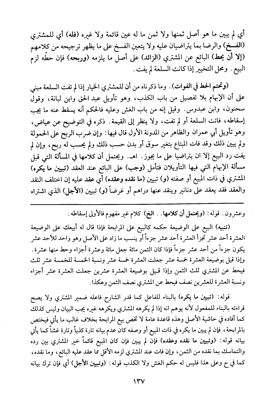 قوله : 16 ( تبيين ما يكره ) : بالبناء للفاعل كما قدر الشارح . فاعله : ضمير المشتري ، ولا يصح قراءته بالبناء للمفعول لأنه يوهم أنه إذا لم يكرهه المشتري ويكرهه غيره يجب البيان ، وليس كذلك كما أفاده في حاشية الأصل . وهذه قاعدة عامة لا تخص بيع المرابحة بخلاف غالب ما يأتي فيختص بالمرابحة . فإن لم يبين ما يكره في ذات المبيع أو وصفه كان عدم بيانه تارة كذباً وتارة غشّاً كما يأتي بيانه .